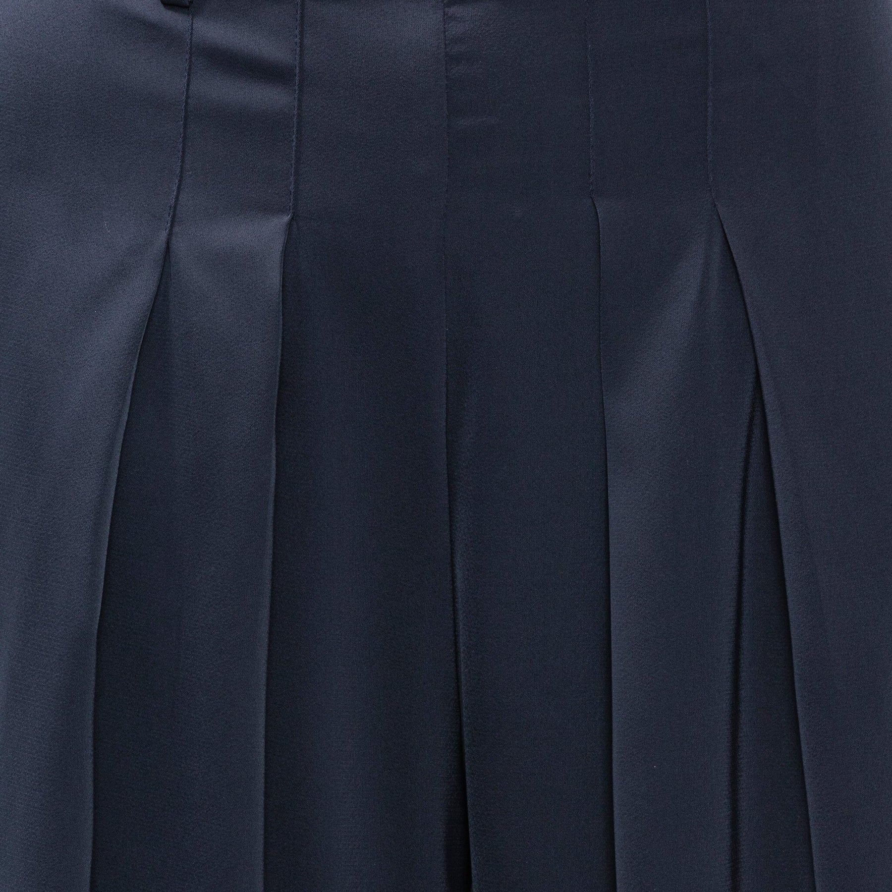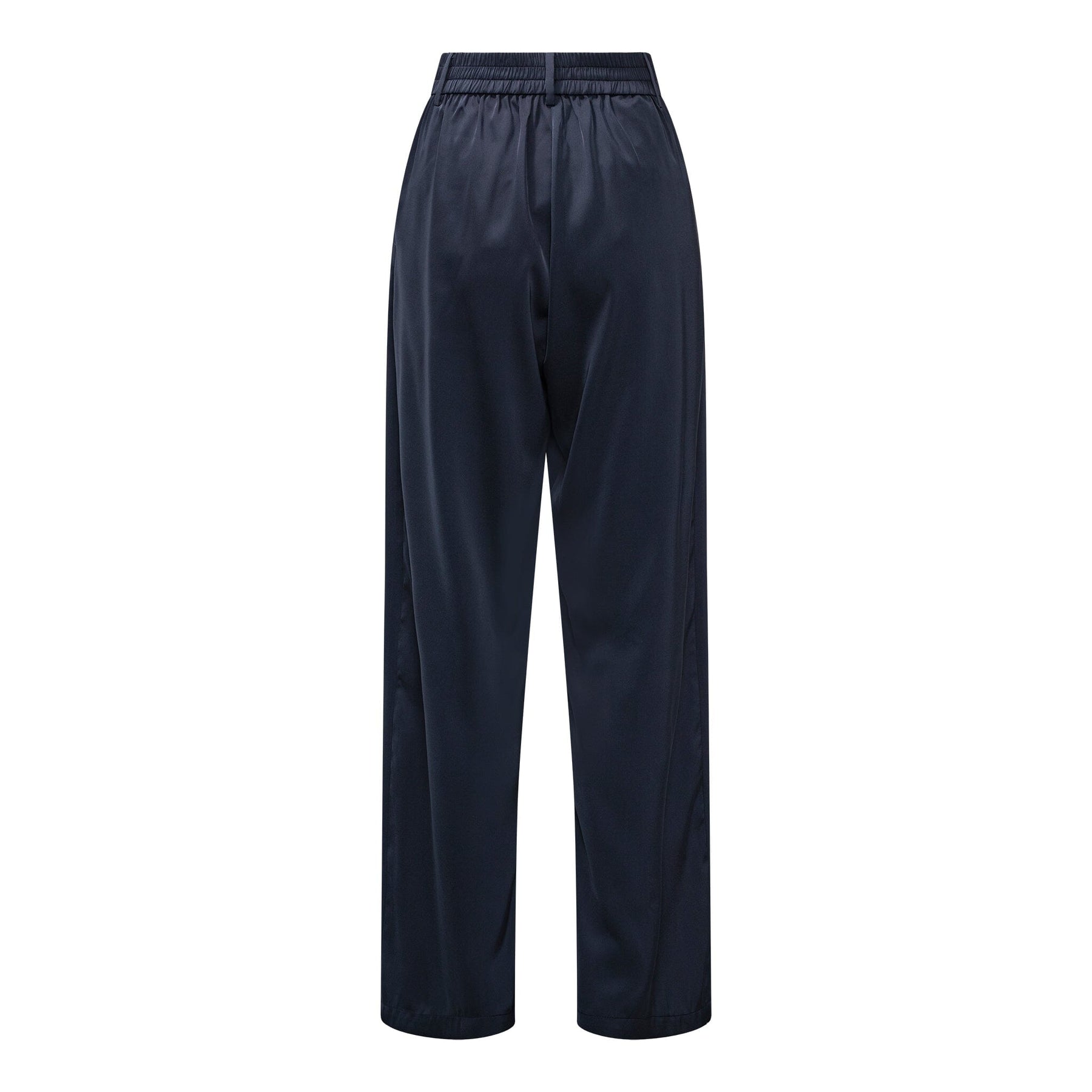Tummansiniset housut Karmamialta, joissa on korkea vyötärö ja leveät lahkeet. Housut sopivat sekä juhlaan, arkeen että muodollisiin tilaisuuksiin.