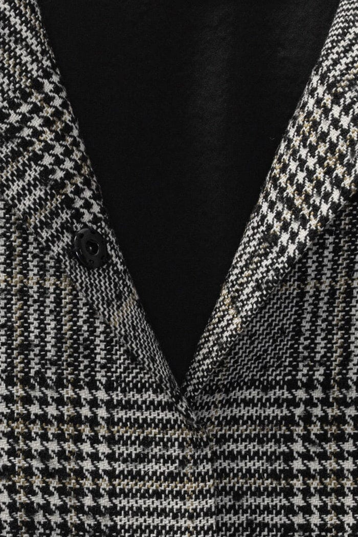 Lyhyt takki Karmamialta harmaassa ruudullisessa kuosissa. Ulkopinta on villaa ja vuori on pehmeää satiinia.
