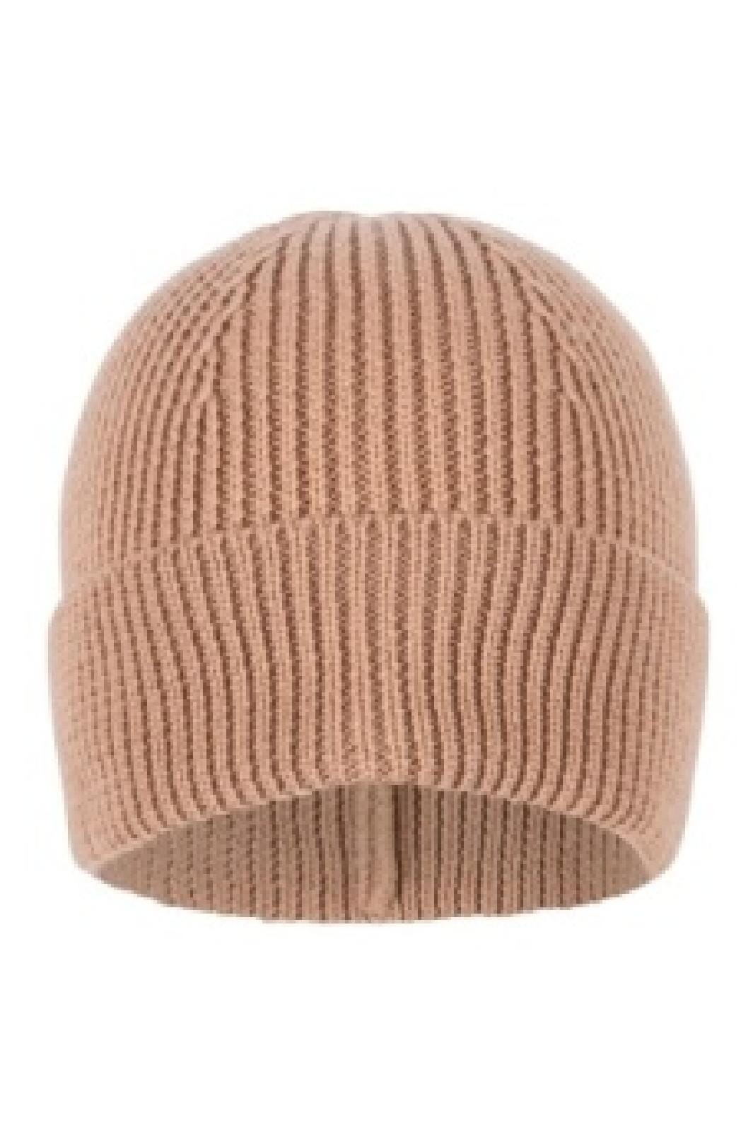 Konges Sløjd:n neulottu pipo vaaleanruskeana. Pipossa on ribbistruktuuri ja käännetty reuna, joka tarjoaa hyvän istuvuuden.