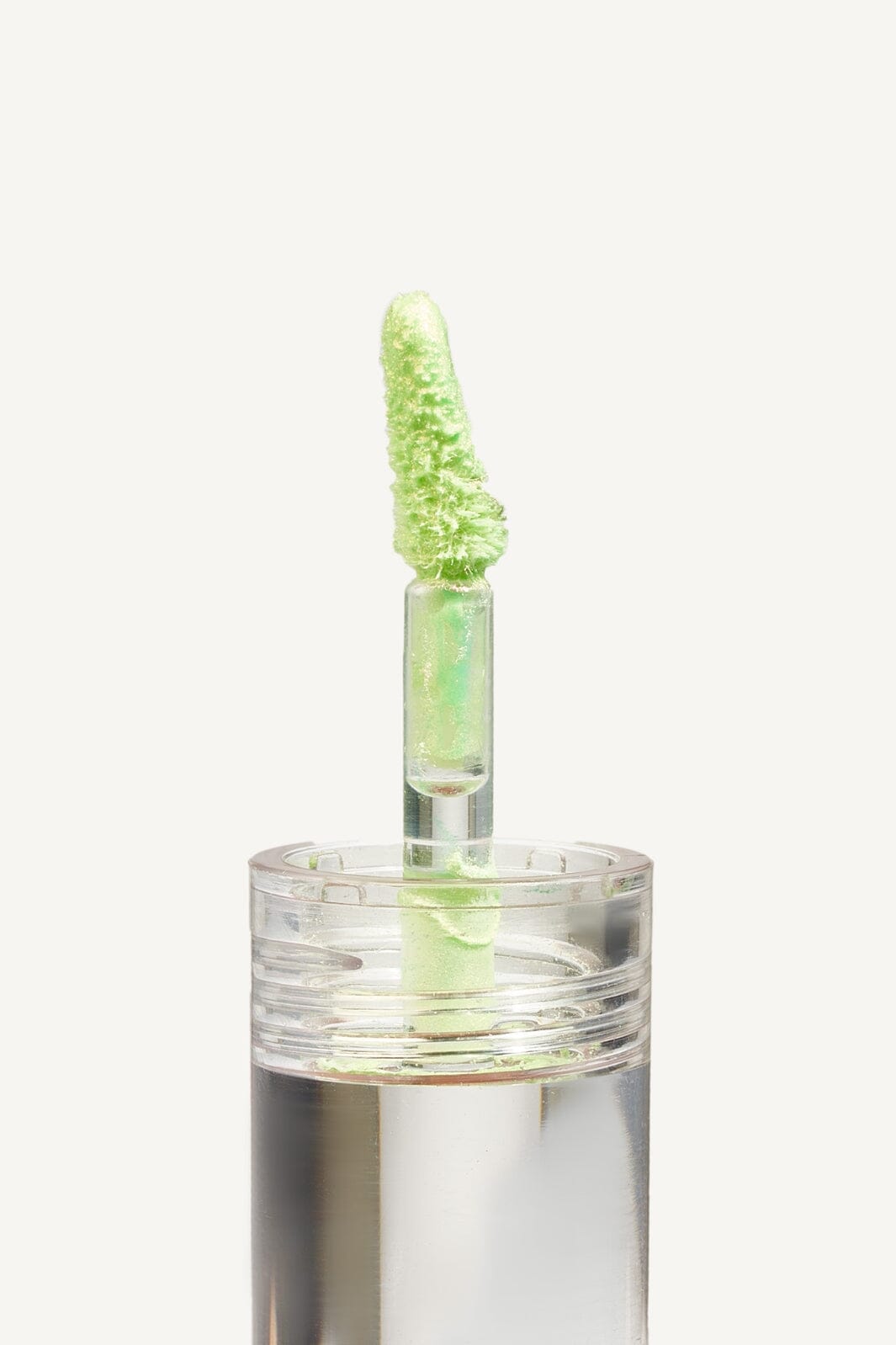 Kynsipulveri Le Mini Macaronilta vihreässä sävyssä, jossa on kimallusvaikutus. Pulveri antaa kiiltävän pinnan hienoilla kimalluspartikkeleilla, jotka luovat syvyyttä väriin.