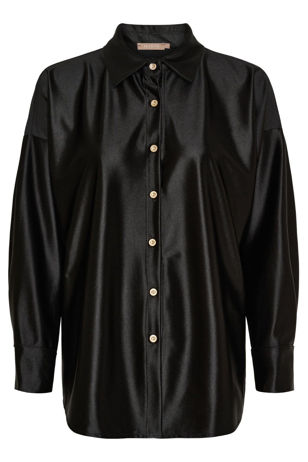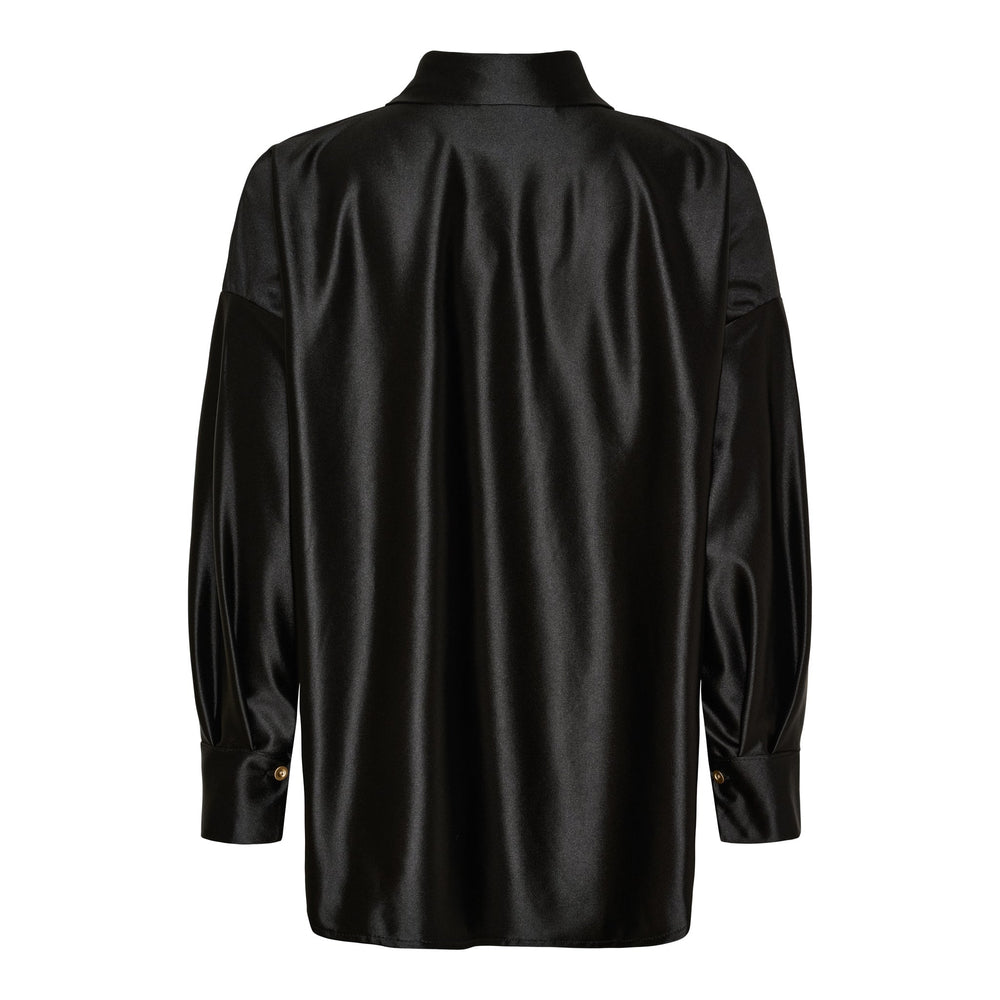 Musta jumpsuit Liberte:ltä pehmeästä materiaalista. Siinä on lyhyet hihat ja pyöreä kaula-aukko. Vyötäröllä oleva nauha helpottaa istuvuuden säätämistä.
