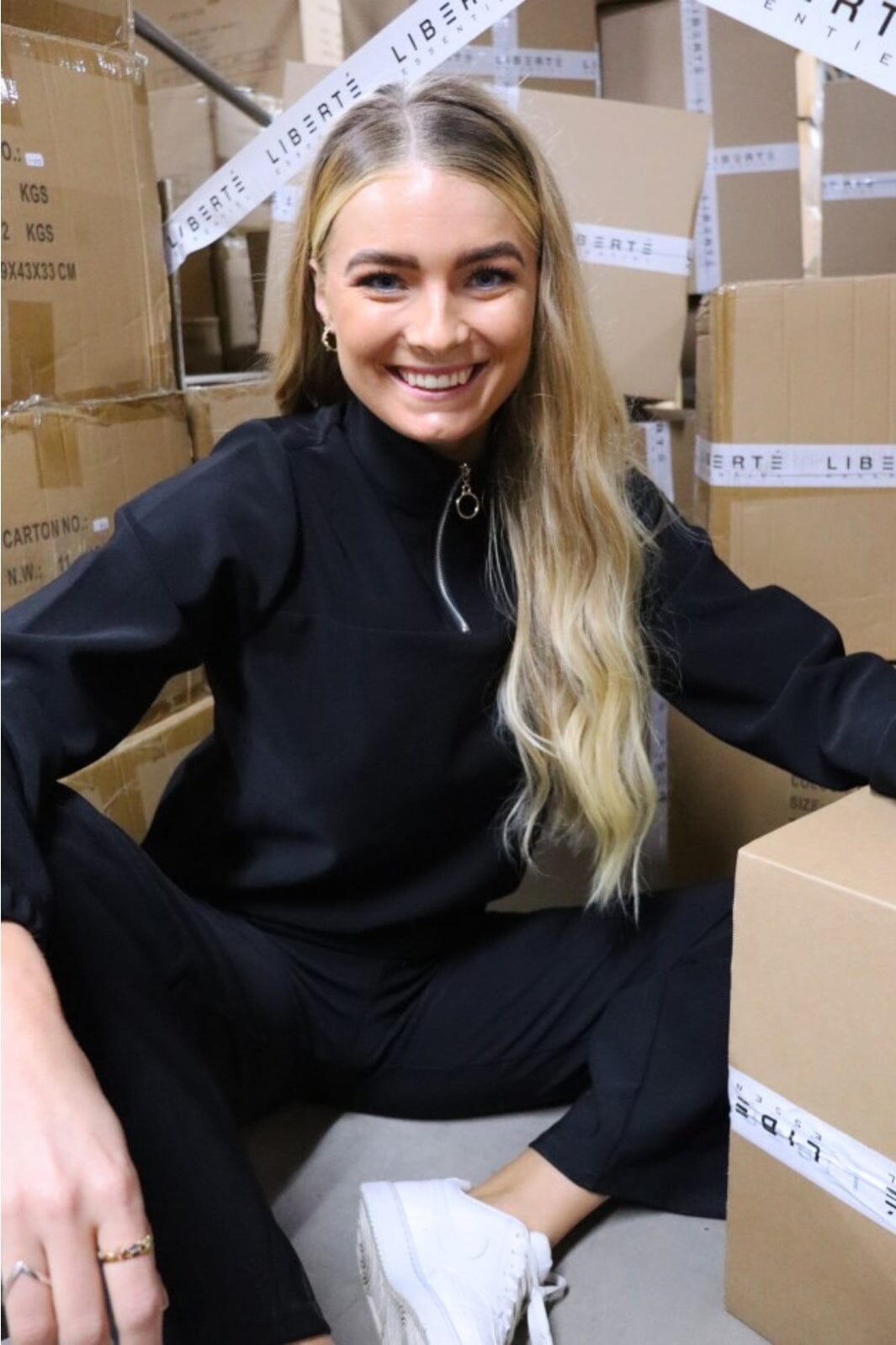 Musta paita Liberte:ltä, jossa on korkea kaulus ja vetoketju. Musta väri tekee paidasta helpon yhdistää muiden vaatteiden kanssa, ja korkea kaulus tarjoaa hyvän suojan viileinä päivinä.