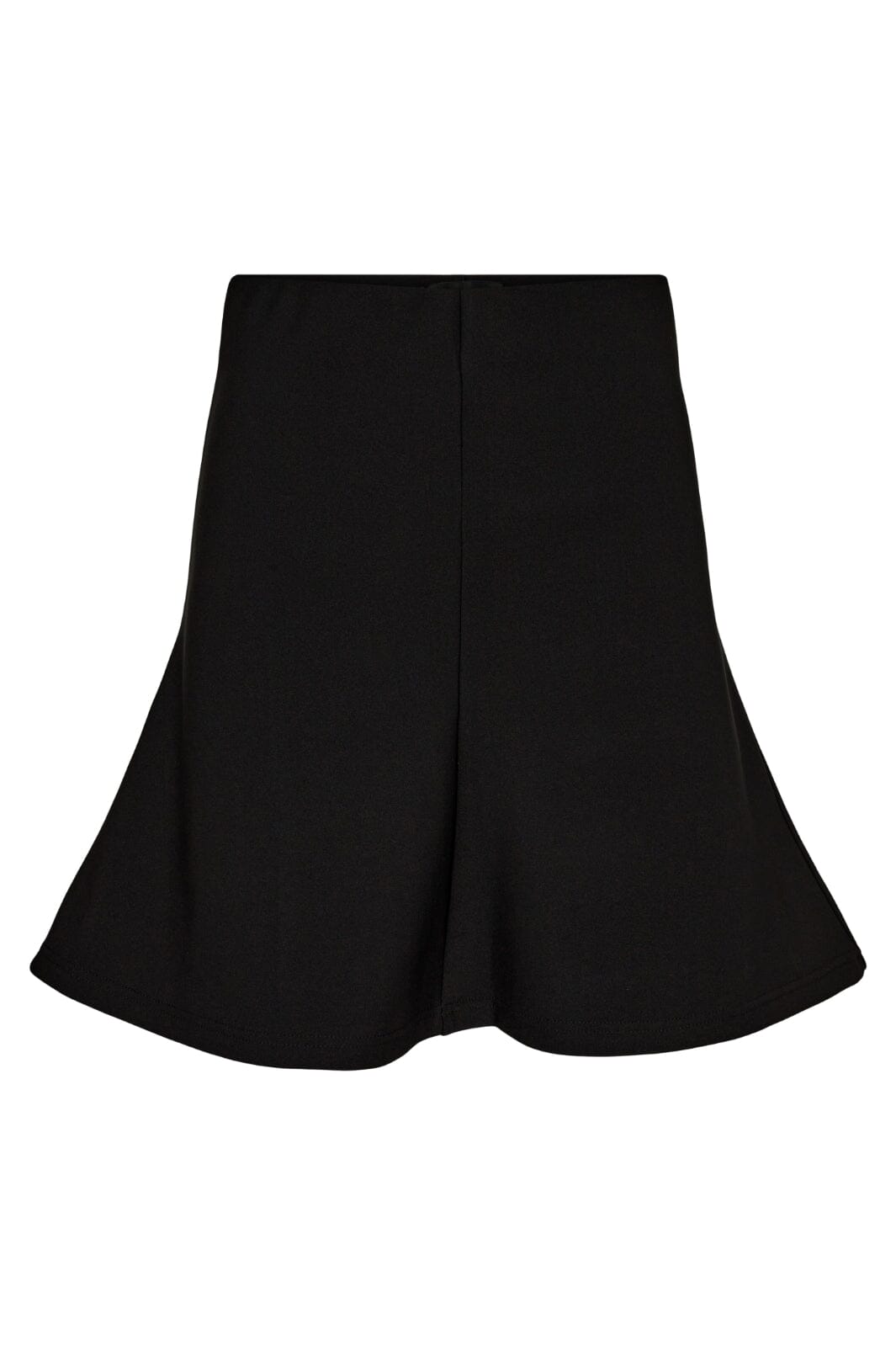 Musta lyhyt hame Liberte:ltä, jossa on leijuva siluetti. Siinä on sileä vyötärö ja puhdas muotoilu ilman näkyviä sulkemisia.