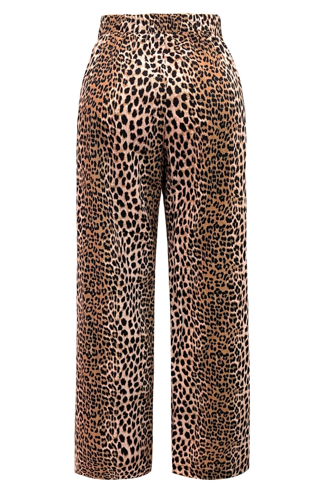 Vaatteet Liberte:ltä leopardikuosisina ruskeissa ja beigen sävyissä. Niissä on regular fit, jossa on joustava vyötärö ja nilkkapituus. Rypytys yksityiskohdat antavat housuille naisellisen ilmeen.