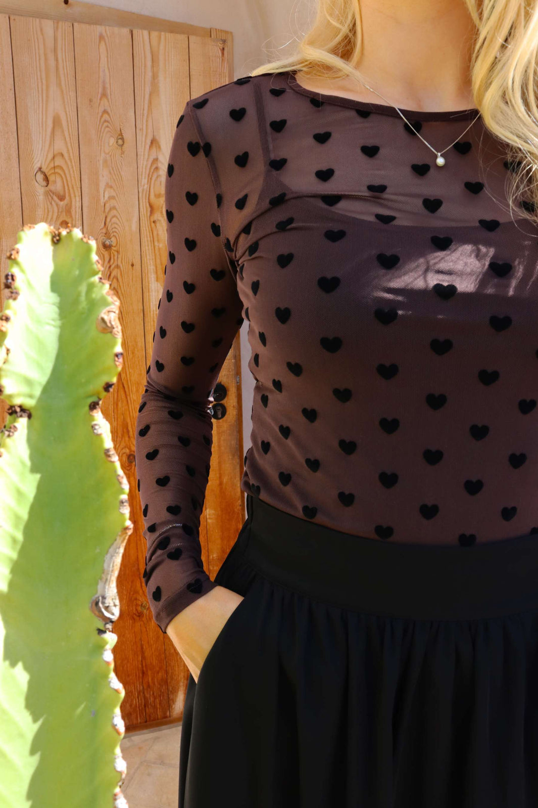 Liberte - Mesh Ls Tshirt 22065 - Dark Brown Big Flock Dot