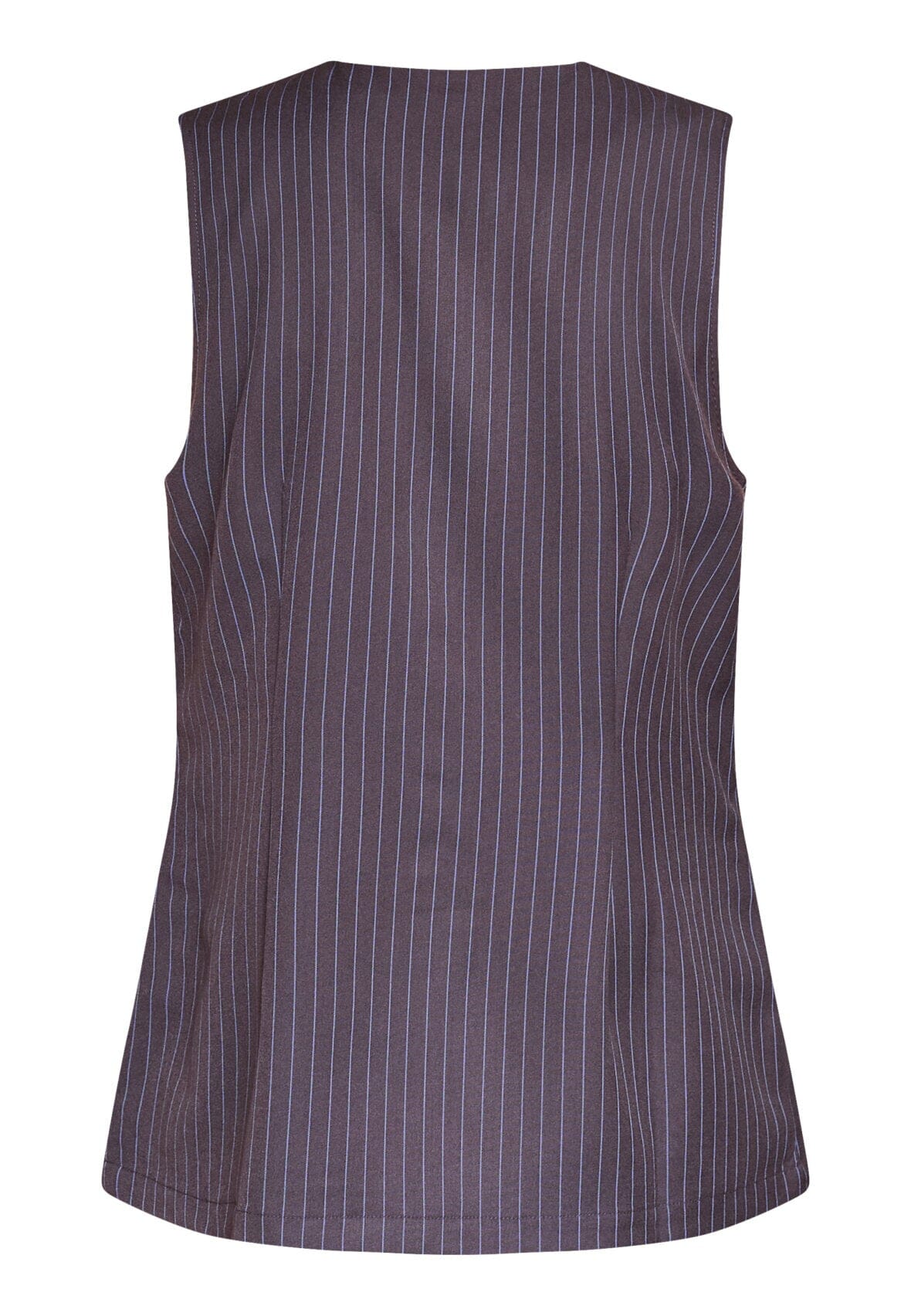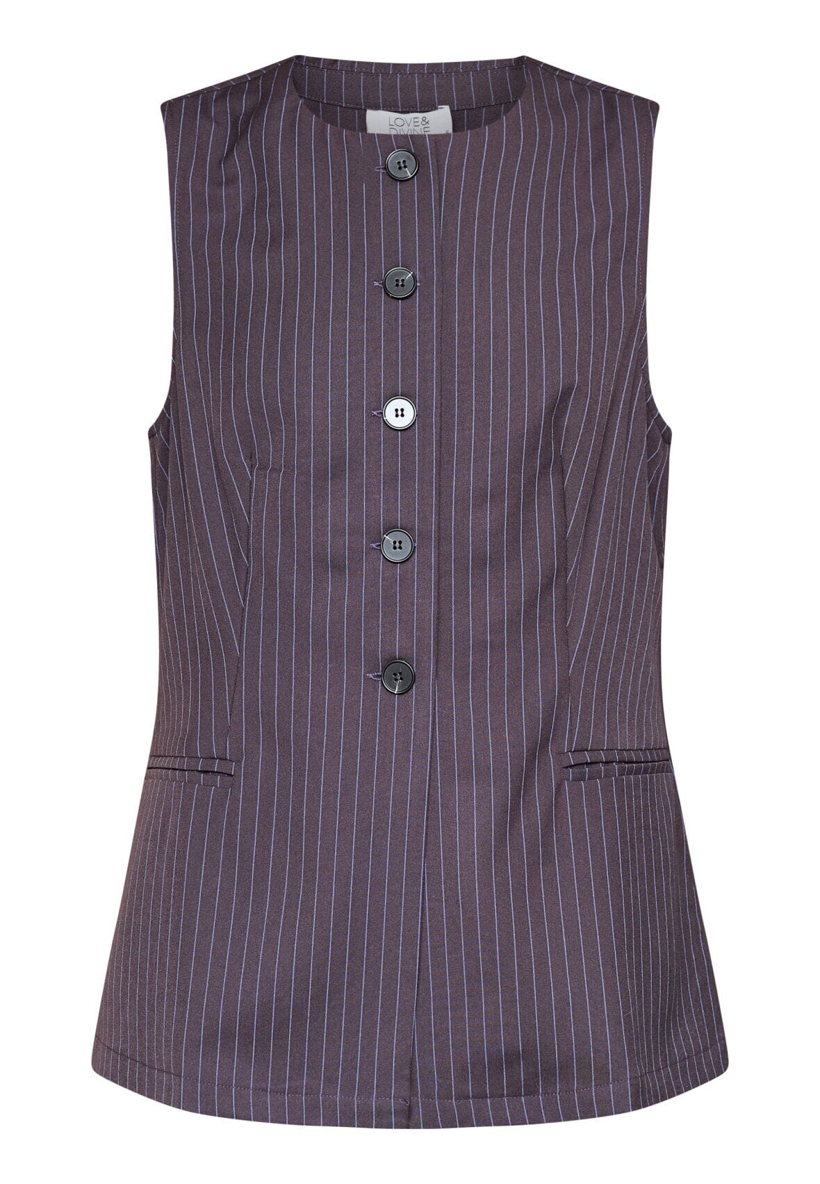 Hihaton liivi Love & Divinelta, sinisillä pinstripe-raidoilla. Liivi sopii sekä muodollisiin kokouksiin että juhlavampiin tilaisuuksiin.