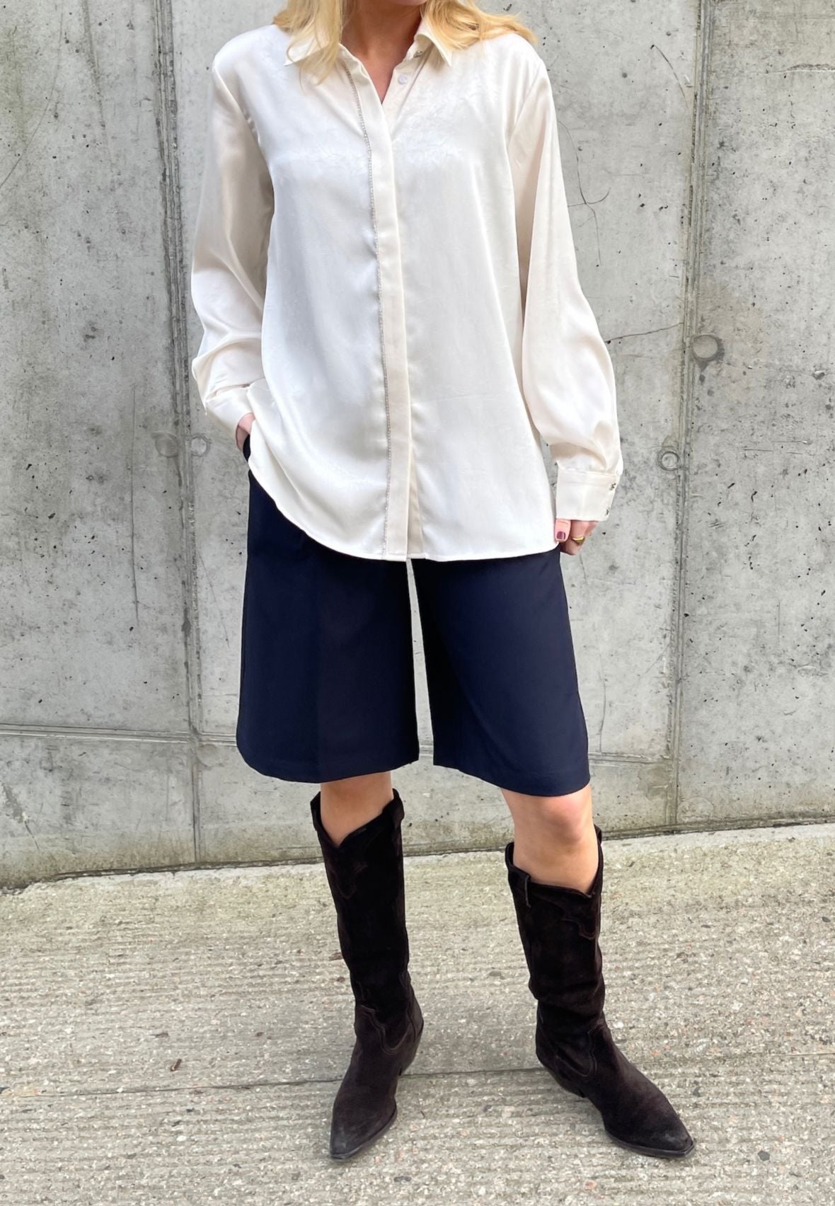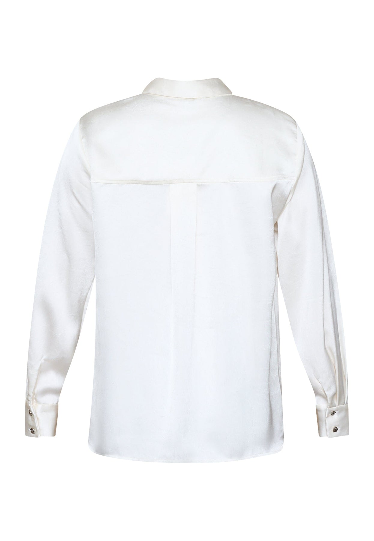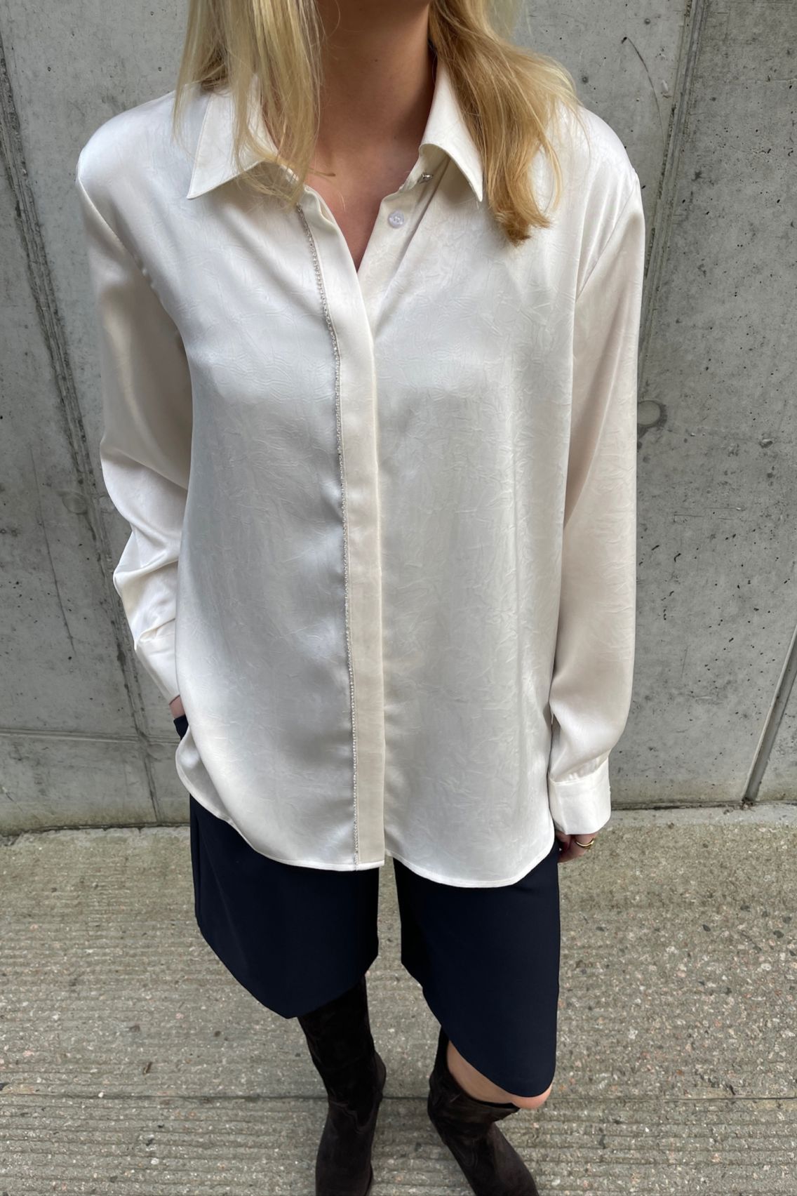 Kermanvärinen paita Love & Divine -merkiltä, klassisella kauluksella ja pitkissä hihoissa. Paidassa on paljetteja nappilistan varrella sekä kalvosimet napeilla.