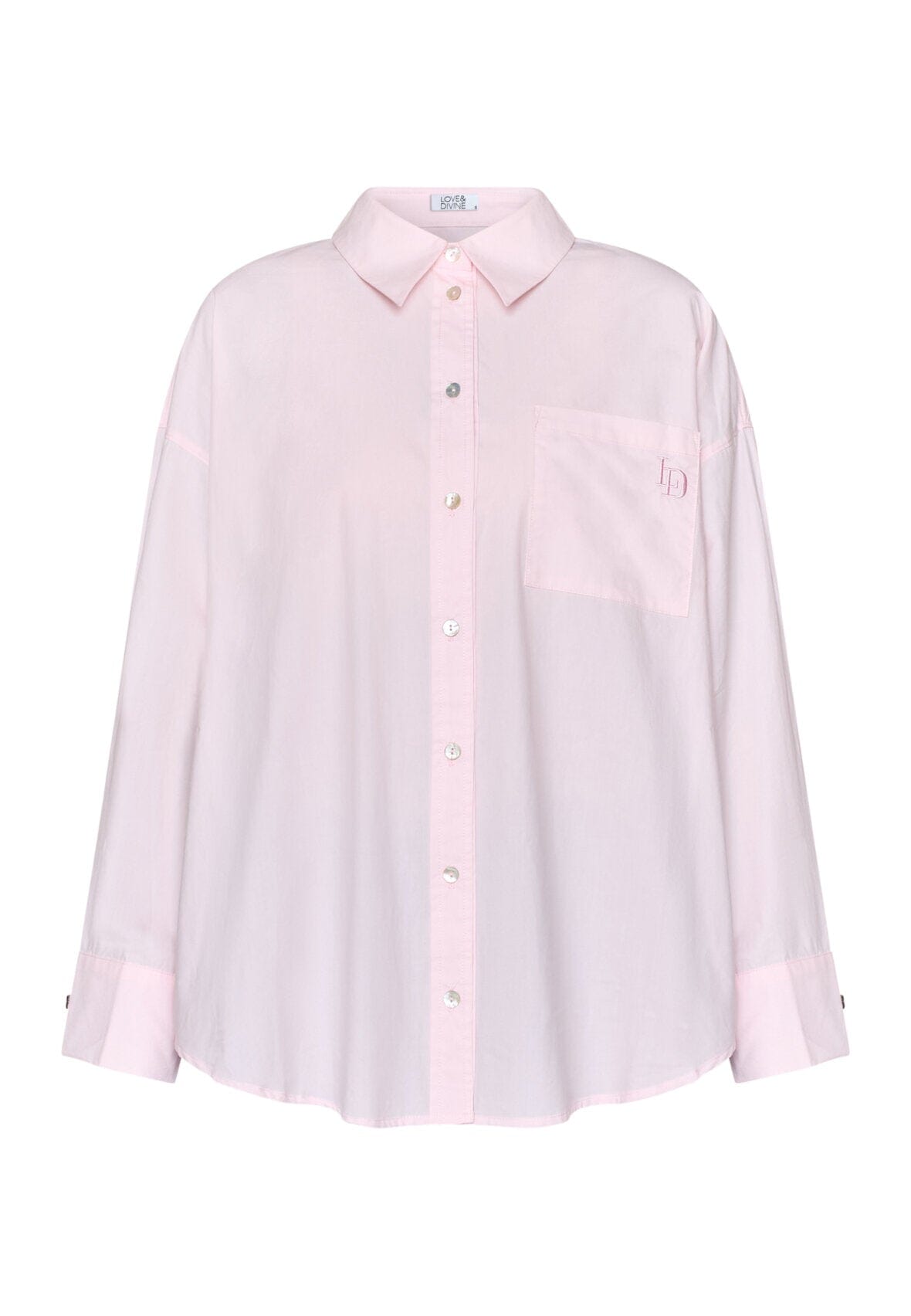 Vaaleanpunainen paita Love & Divine -merkiltä, valmistettu 100 % puuvillasta. Paidassa on oversize-istuvuus ja pitkät hihat, kauluspaita-kaulus ja nappikiinnitys.