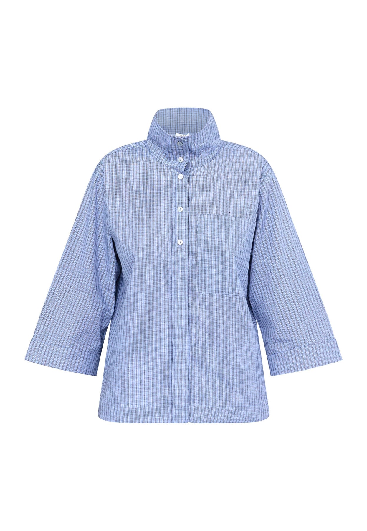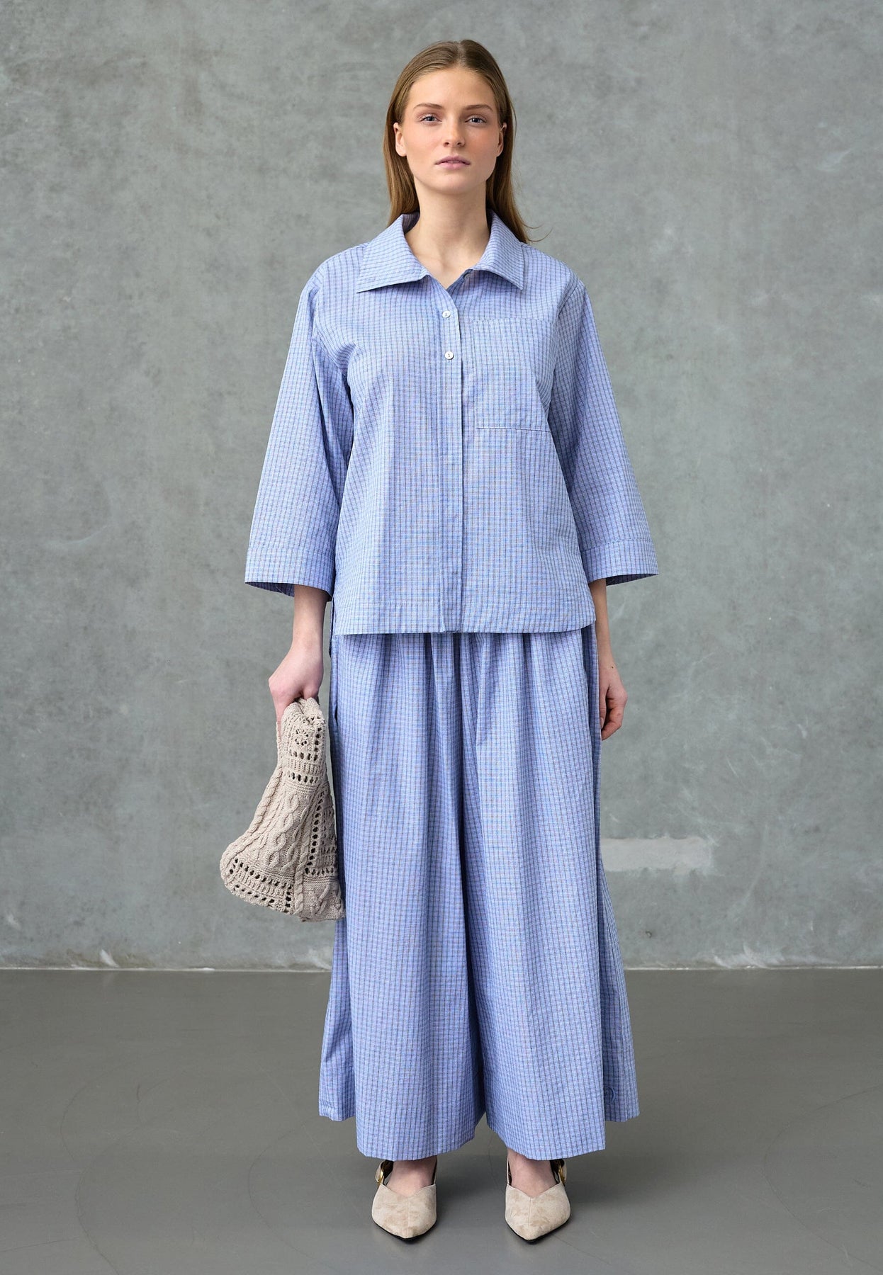 Siniruutuinen paita Love & Divine -merkiltä, valmistettu 100 % puuvillasta. Paidassa on kaulus ja nappikiinnitys edessä sekä ruudullinen kuvio sinisen sävyissä.