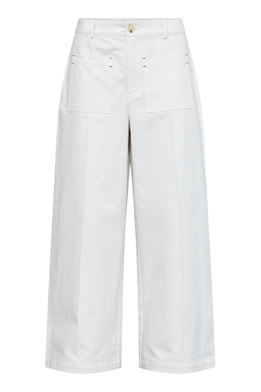Housut Love & Divine -merkiltä vaalean kermanvärisenä. Housut on valmistettu 100 % puuvillasta, joka on hengittävää ja miellyttävää päällä.