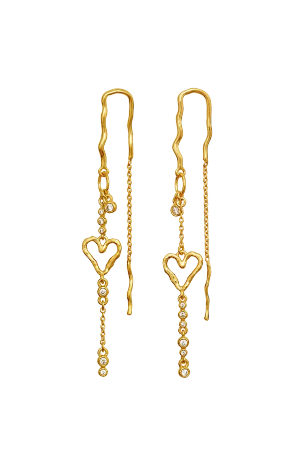Maanesten-korvakorut, valmistettu kierrätetystä sterlinghopeasta, joka on päällystetty 18 karaatin kullalla. Korvakorut on koristeltu valkoisilla zirkonioilla hoikassa siluetissa.