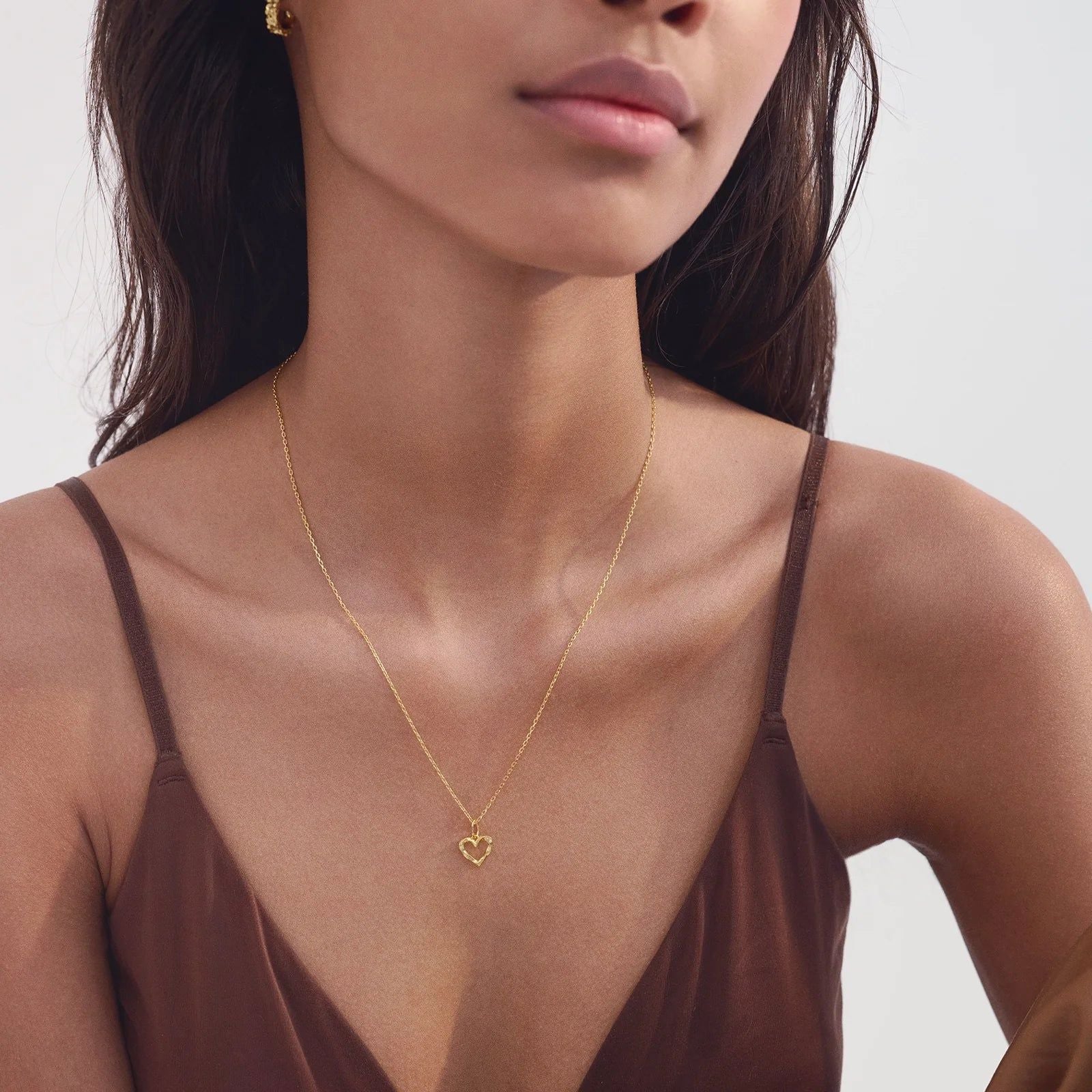 Maanesten-riipus, jossa on sydämenmuotoinen muotoilu. Se on valmistettu kierrätetystä sterlinghopeasta, joka on päällystetty 18 karaatin kullalla kullanväriseksi.