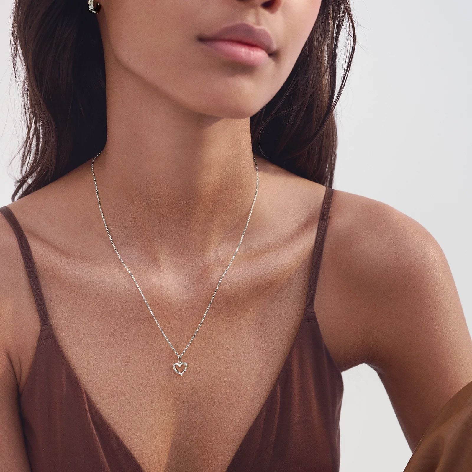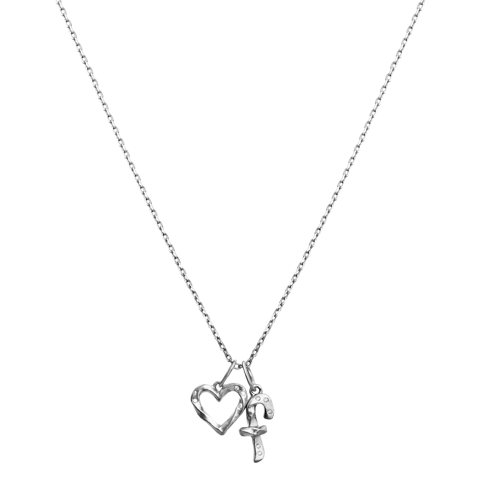 Sydämenmuotoinen riipus Maanestenilta, valmistettu kierrätetystä sterlinghopeasta. Riipuksessa on pieniä pyöreitä yksityiskohtia pinnassa ja se on hopeanvärinen.