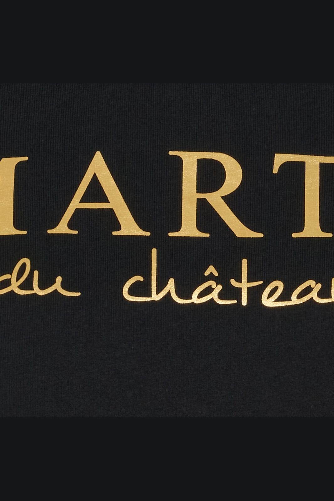 Musta collegepaita Marta Du Chateau -merkkiltä, jossa on kultainen logo edessä. Suunnittelu sisältää klassisen pyöreän kaula-aukon ja pitkät hihat, mikä tekee siitä käyttökelpoisen ympäri vuoden.