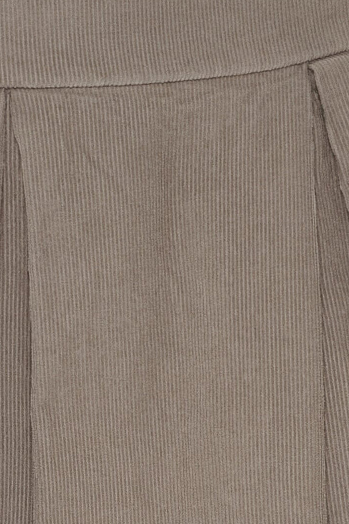 Hame Marta Du Chateaulta beige-harmaassa sävyssä. Hameessa on laskokset edessä ja joustava vyötärö takana.