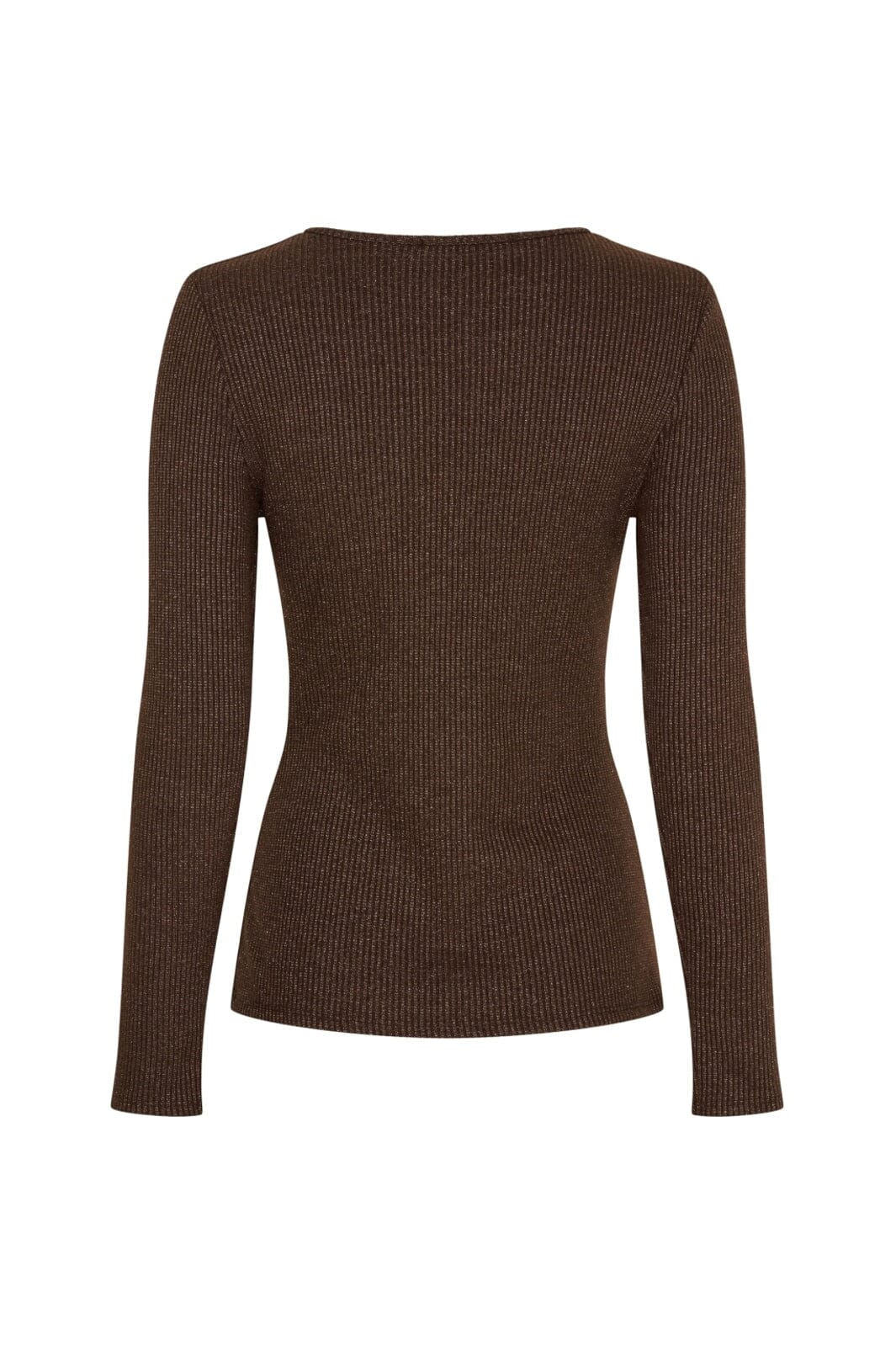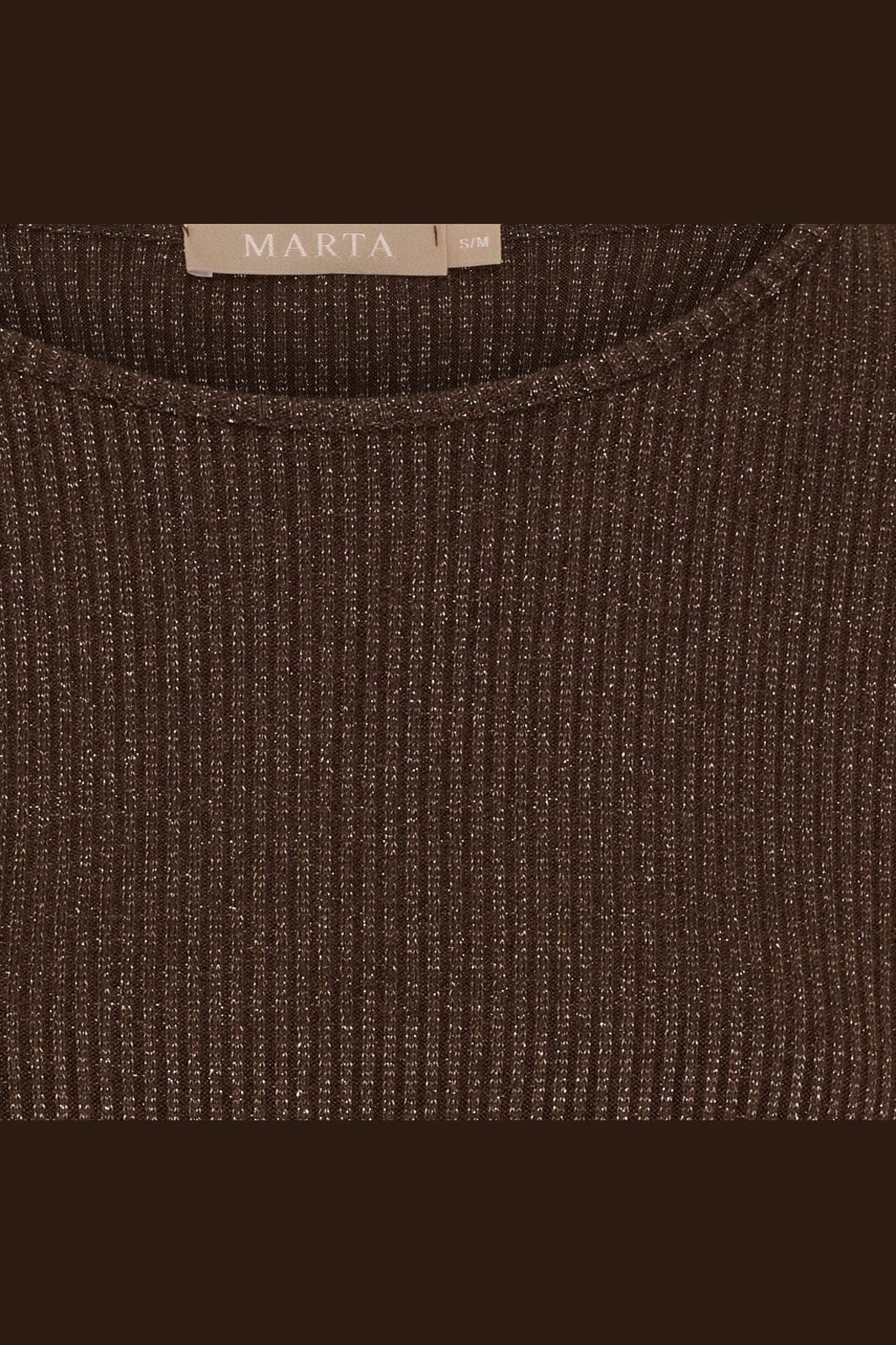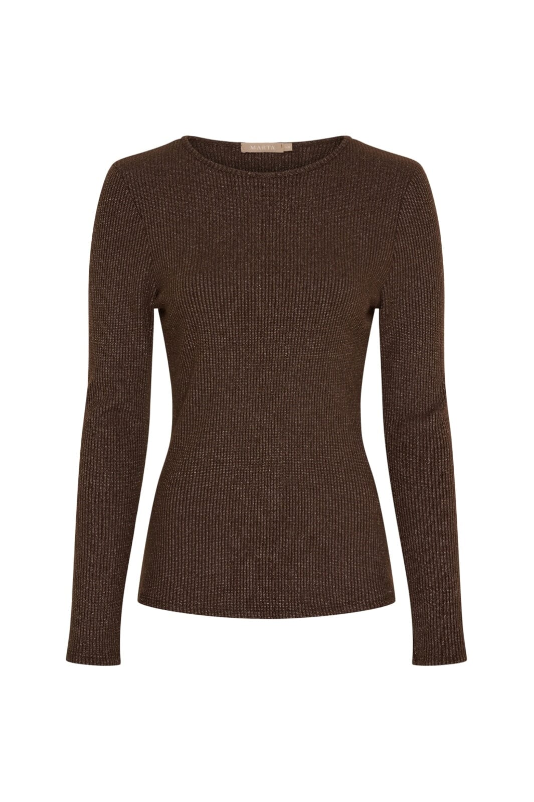 Ruskea, pitkähihainen paita Marta Du Chateaulta, jossa on ribbineulottu pinta. Paidassa on vartaloa myötäilevä istuvuus ja pyöreä pääntie.