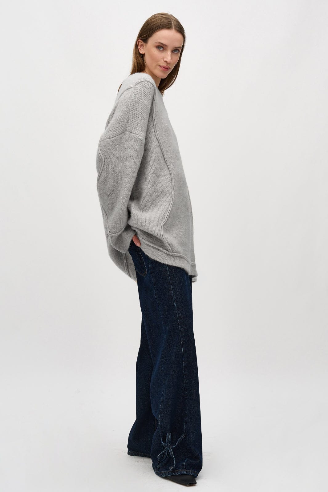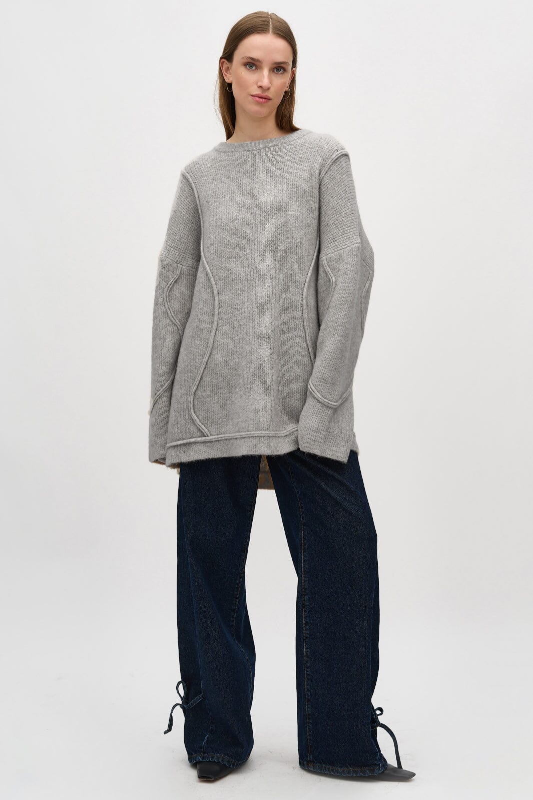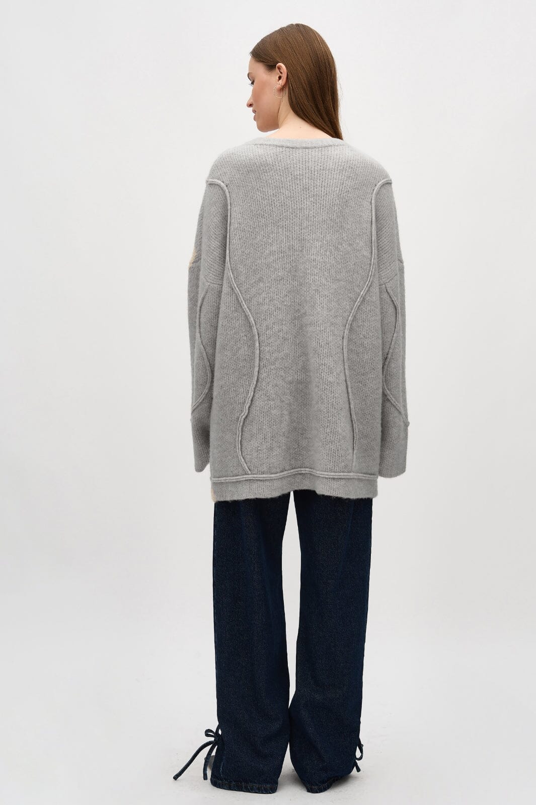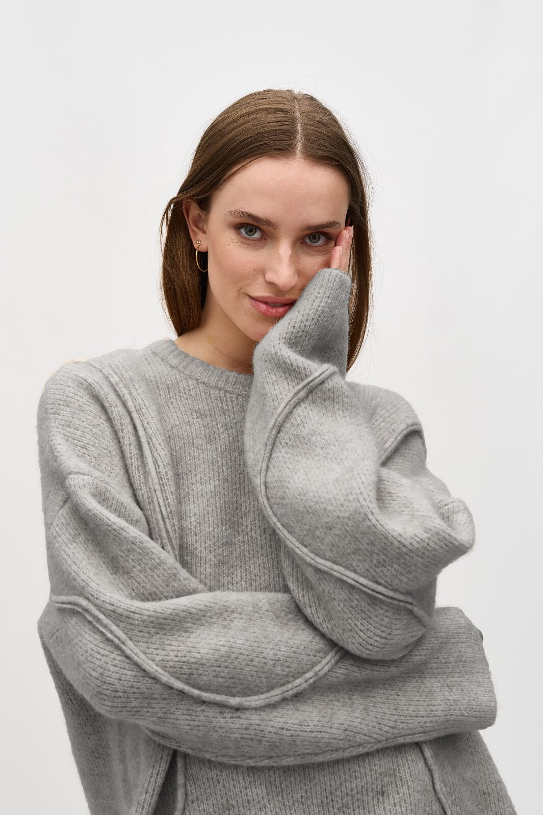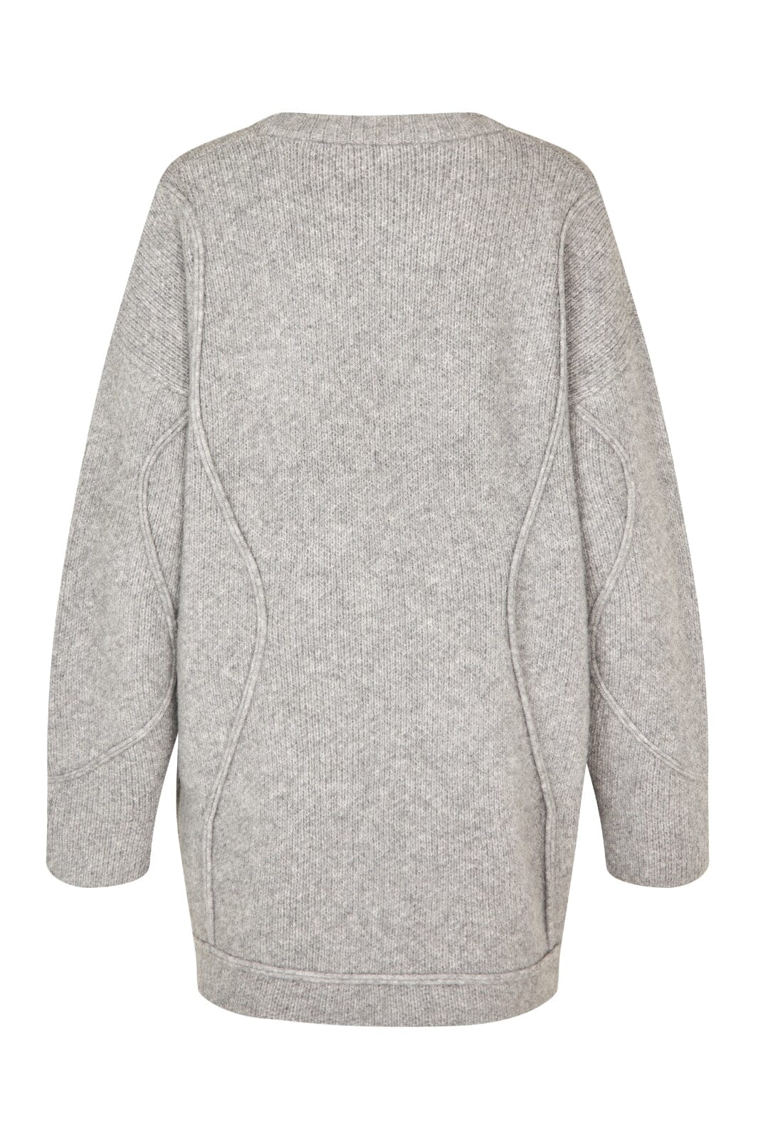 Vaaleanharmaa collegepaita MbyM:ltä, jossa on pyöreä kaula-aukko ja pitkät hihat. Collegepaidassa on regular fit ja se on valmistettu pehmeästä melange-laadusta, jossa on koristeellisia saumoja.