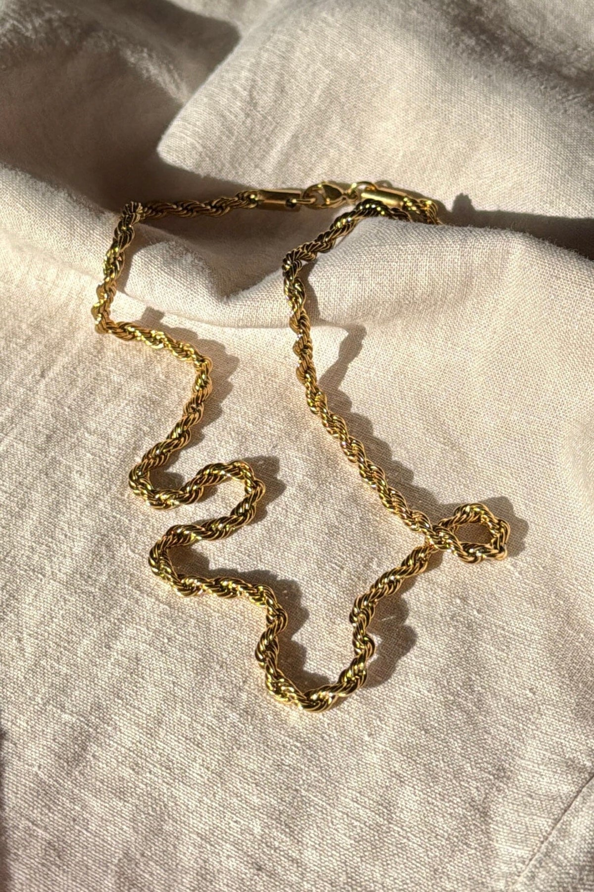 Kultaketju Mellow Moonilta kierretyllä muotoilulla. Ketjussa on klassinen köysiketju, joka antaa korulle käsintehdyn ilmeen.