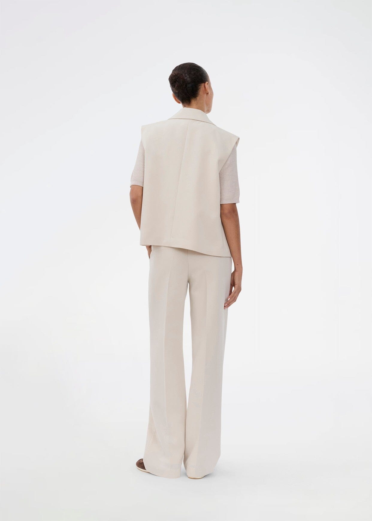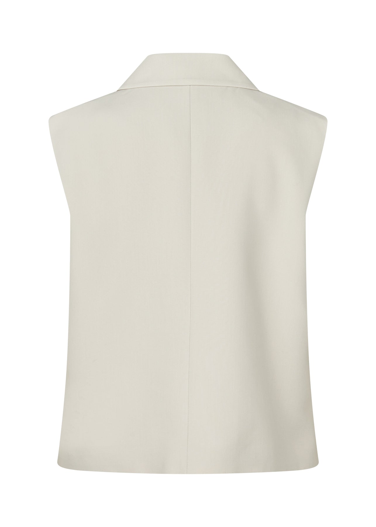 Hihaton liivi Modströmiltä offwhite-sävyssä. Liivissä on klassinen kaulus ja se suljetaan edestä napeilla.