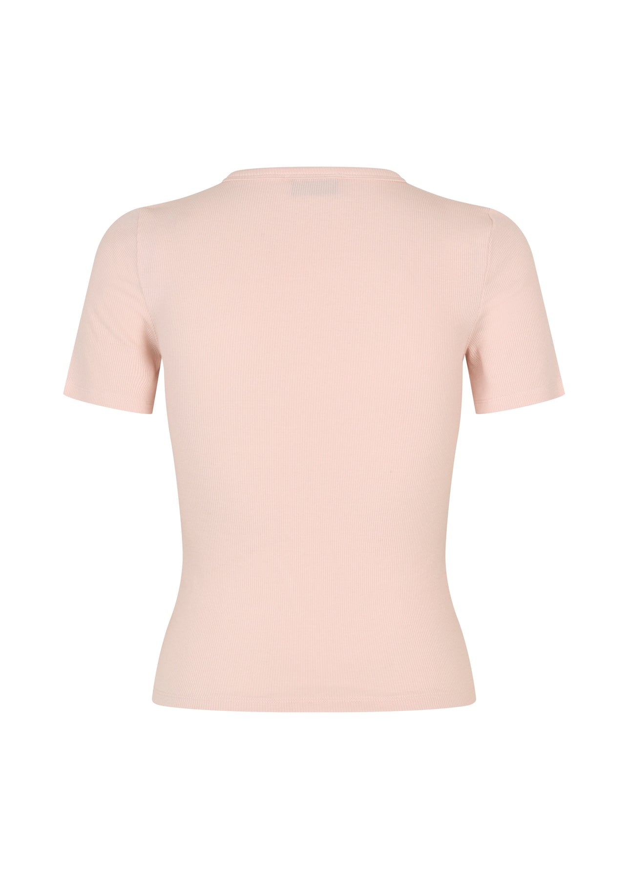 Lyhythihainen T-paita Modströmiltä vaaleanpunaisessa sävyssä. T-paidassa on vartaloa myötäilevä istuvuus ja se on valmistettu pehmeästä joustavasta puuvillaribistä.