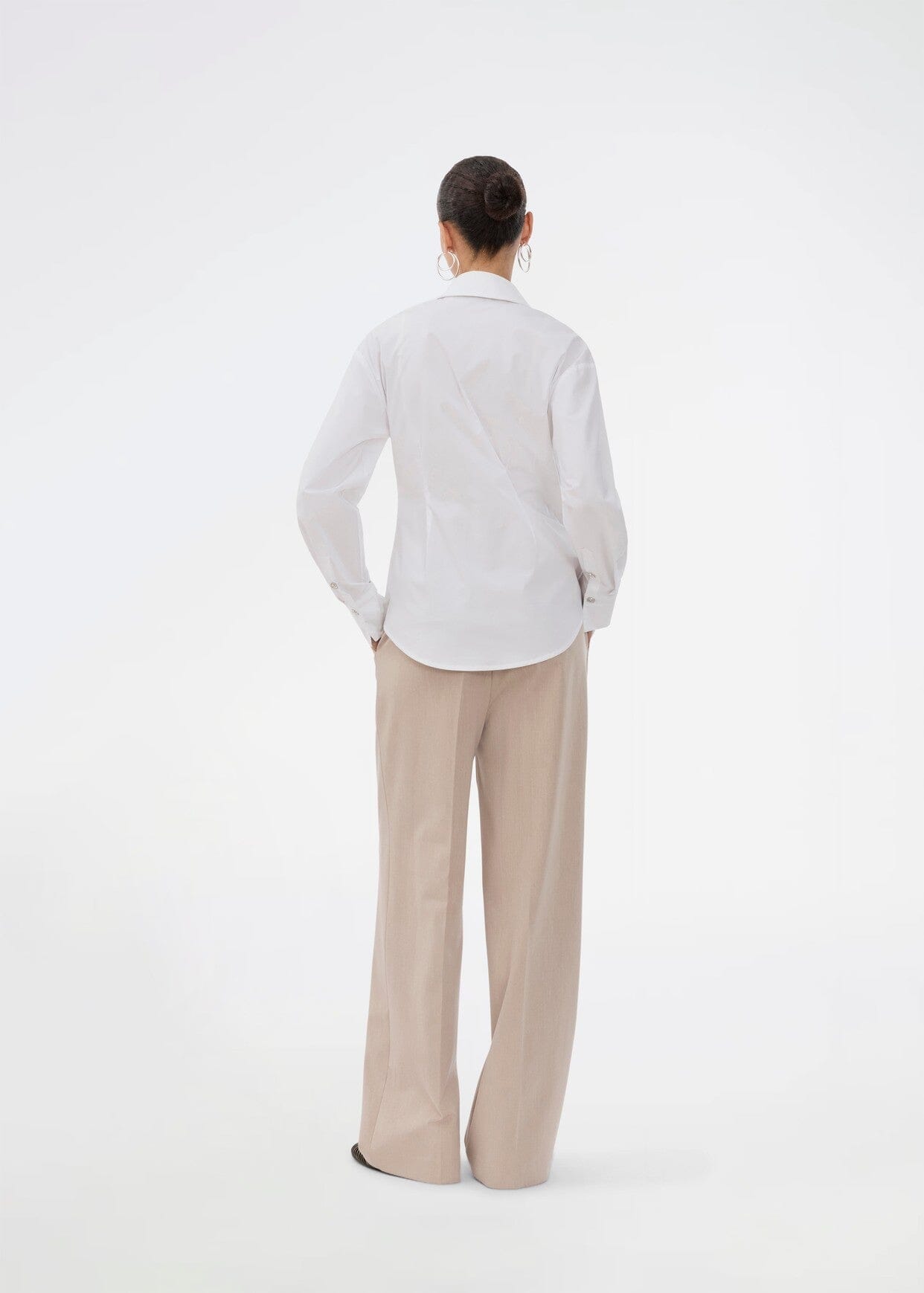 Valkoinen Modström-paita, valmistettu 97 % luomupuuvillasta. Paidassa on terävä kaulus ja puolipitkä nappilista. Muotoonommeltu malli luo feminiinisen siluetin.