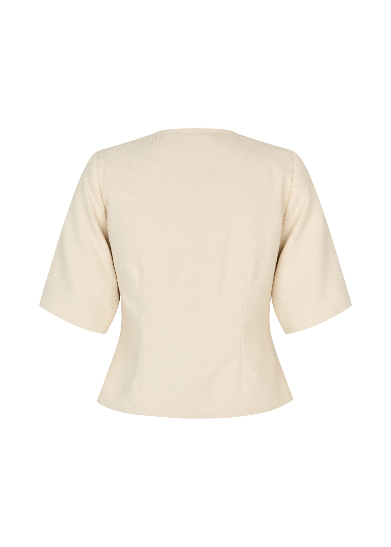Lyhythihainen bleiseri Modströmiltä värissä Vanilla Cream. Bleiserissä on pyöreä pääntie ja se suljetaan edestä napeilla.