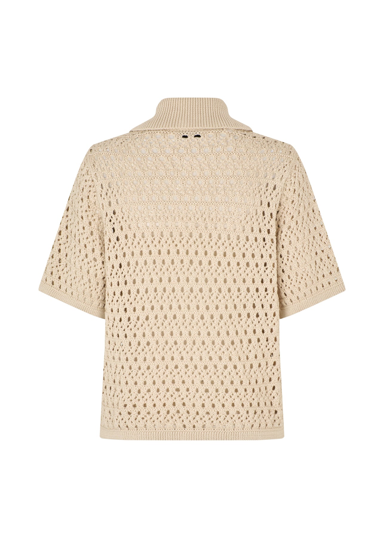 Neuletakki Modströmiltä vaalean hiekan sävyssä. Neuletakissa on avoin neuloskuvio rei’illä ja se on suunniteltu lyhyillä hihoilla ja kauluksella.