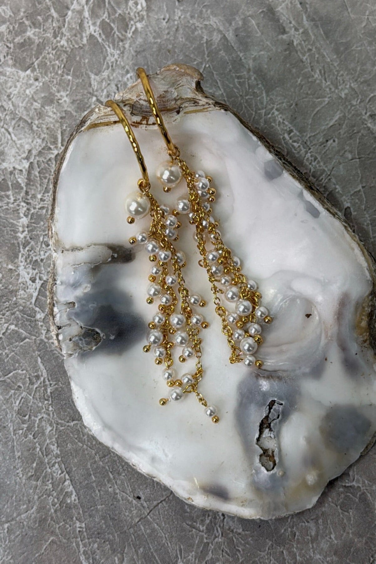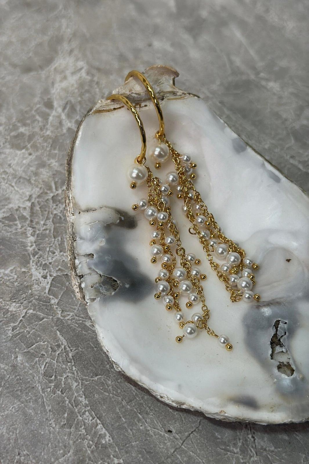 Päällystetyt korvakorut Molly&My Jewellery x Melanie Due -mallistosta, valmistettu ruostumattomasta teräksestä ketju- ja helmiriipuksilla.