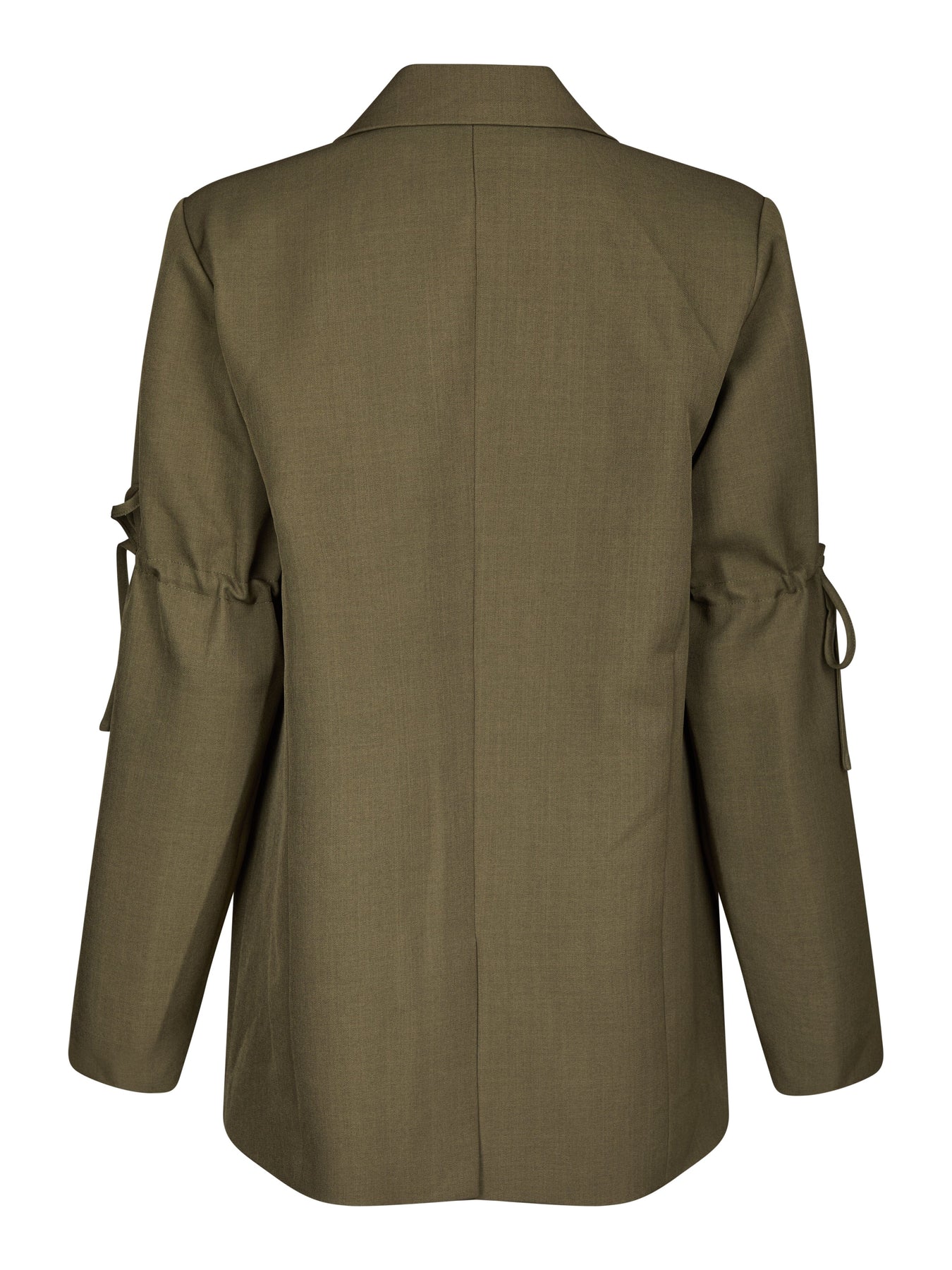 Bleiseri Molly&My x Julie Elgaard -mallistosta khakinvihreänä. Bleiserissä on nyöritysyksityiskohdat hihoissa, koristeelliset napit edessä ja kaksi etutaskua läpillä.