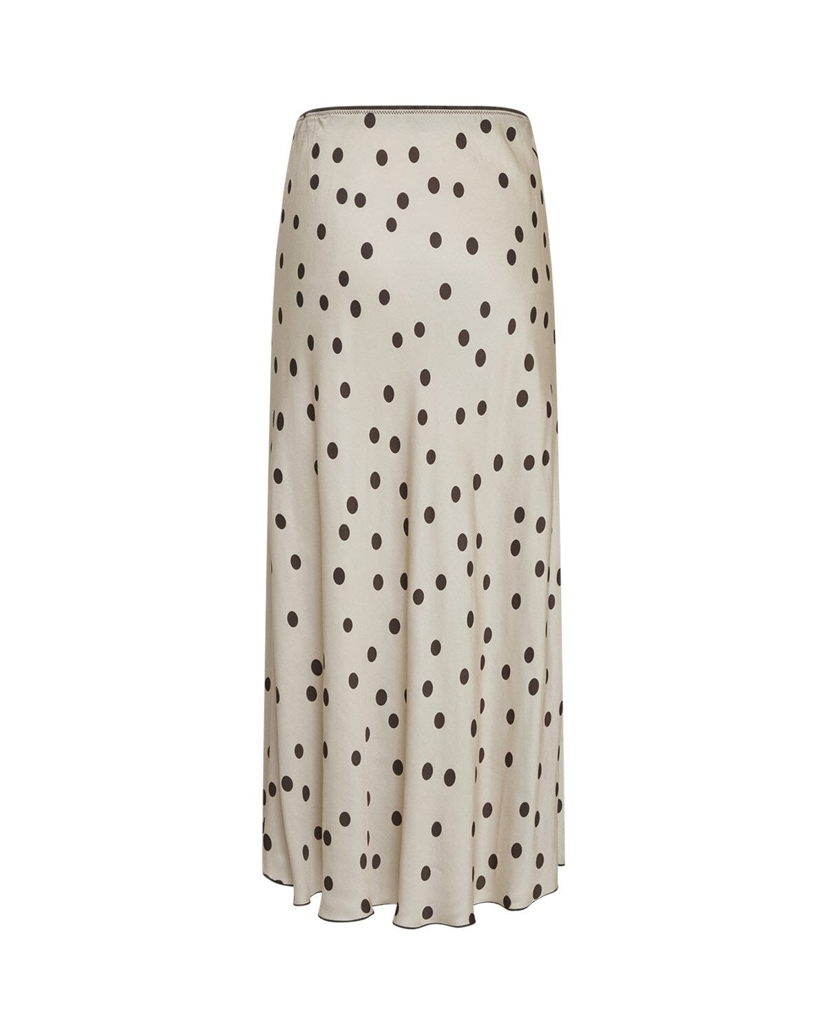 MSCH Copenhagenin pitkä hame beigestä viskoosista, jossa on tummia pilkkuja. Hameessa on laskeutuva siluetti ja joustava vyötärö.