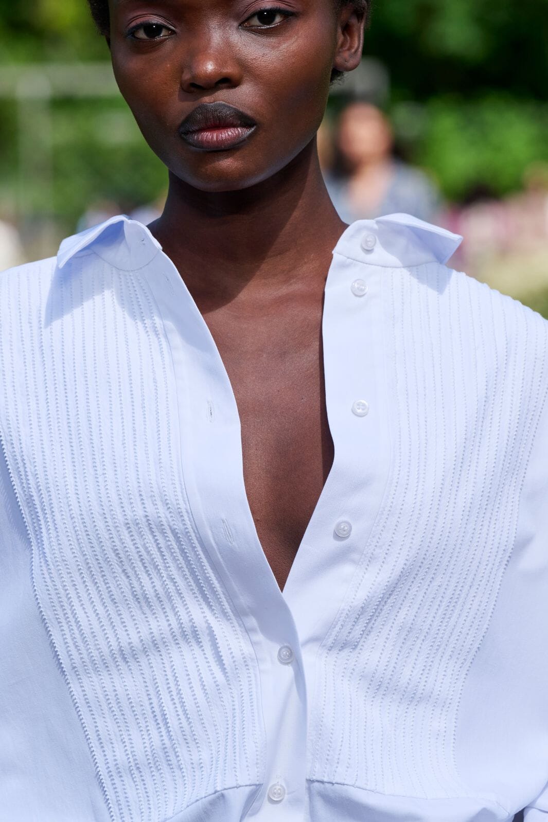 Valkoinen Munthe-paita, valmistettu 100 % luomupuuvillasta. Paidassa on oversized-istuvuus ja pitkät hihat sekä klassinen kaulus.