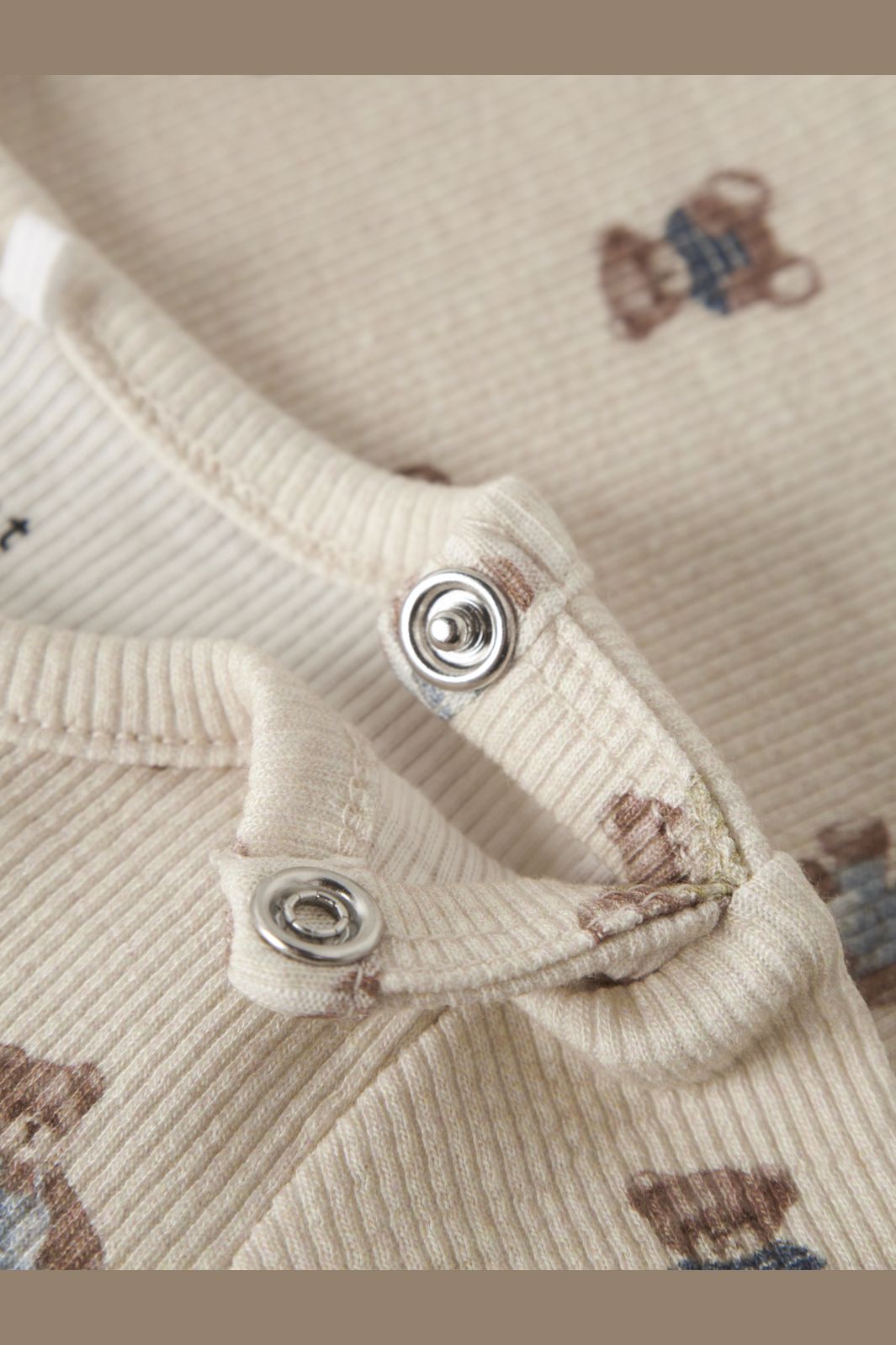 Name It -merkin body beigeen meleeratussa värissä. Bodyssa on ribbineulottu materiaali ja karhupainatus kauttaaltaan.