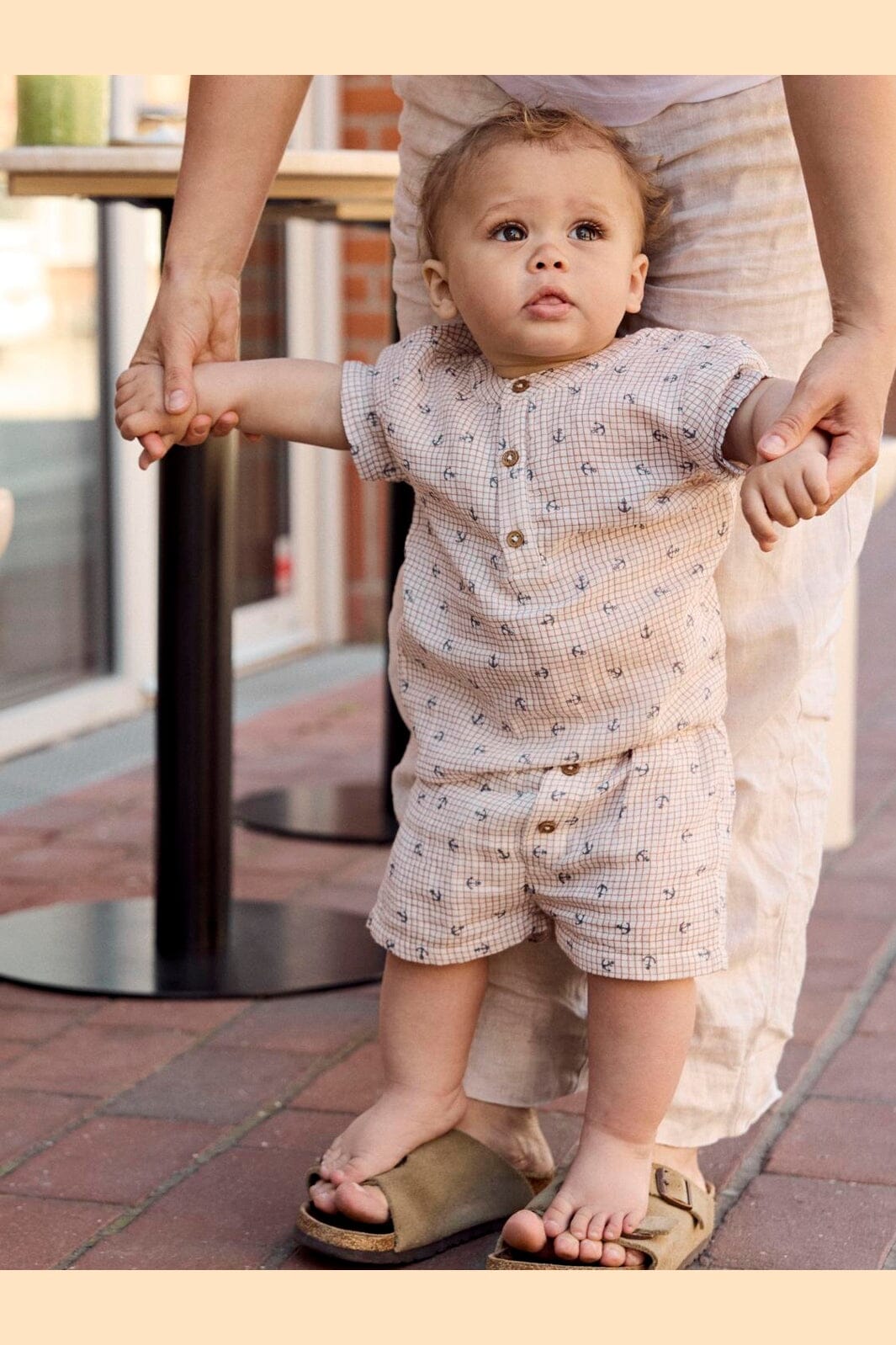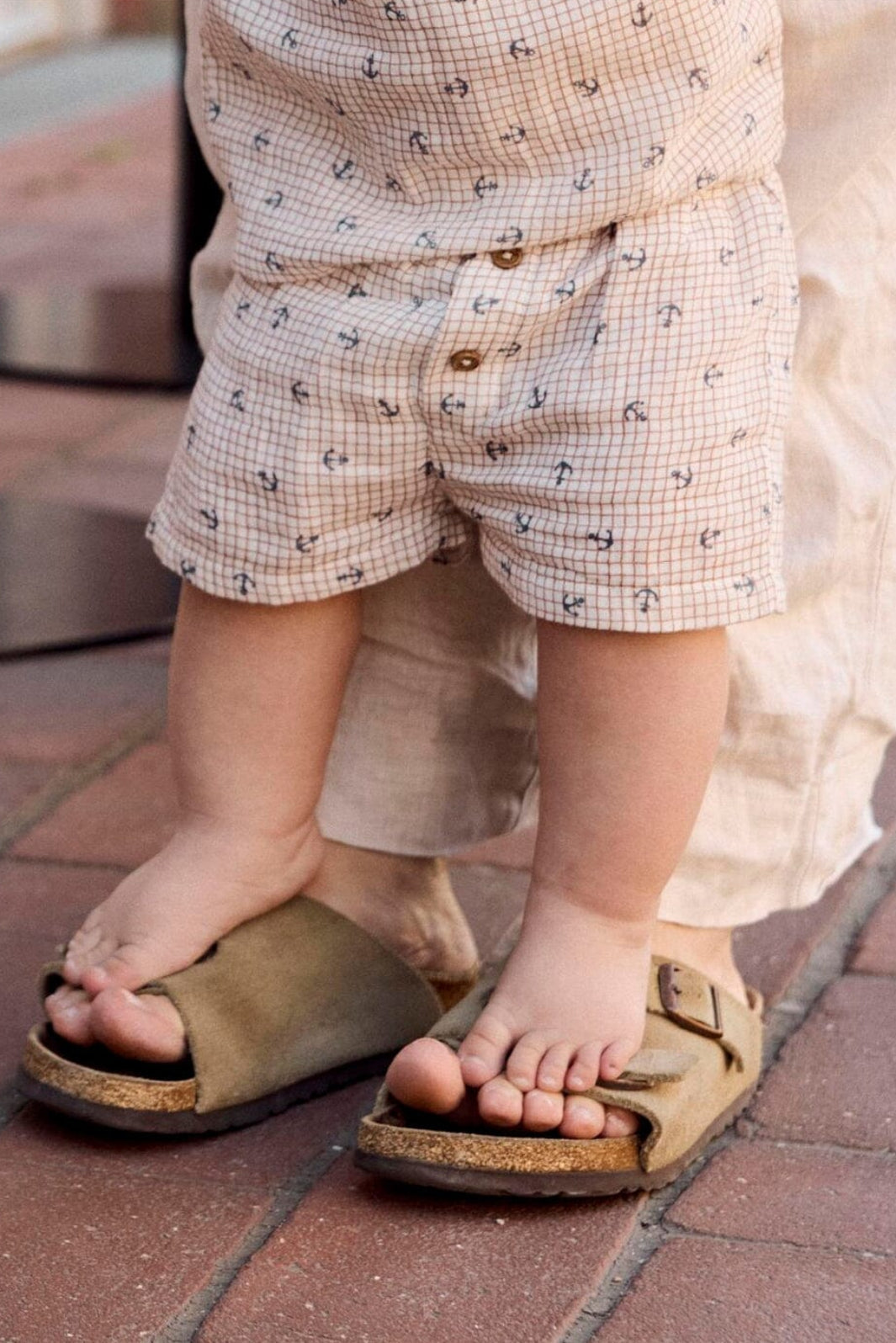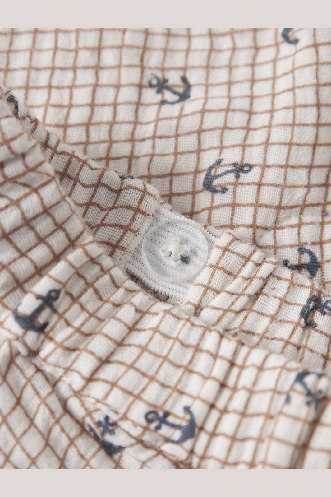 Beiget shortsit Name It -merkiltä, 100 % puuvillaa. Shortseissa on ruutukuvio, jossa on pieniä ankkuriprinttejä, sekä joustava vyötärö nappikiinnityksellä.