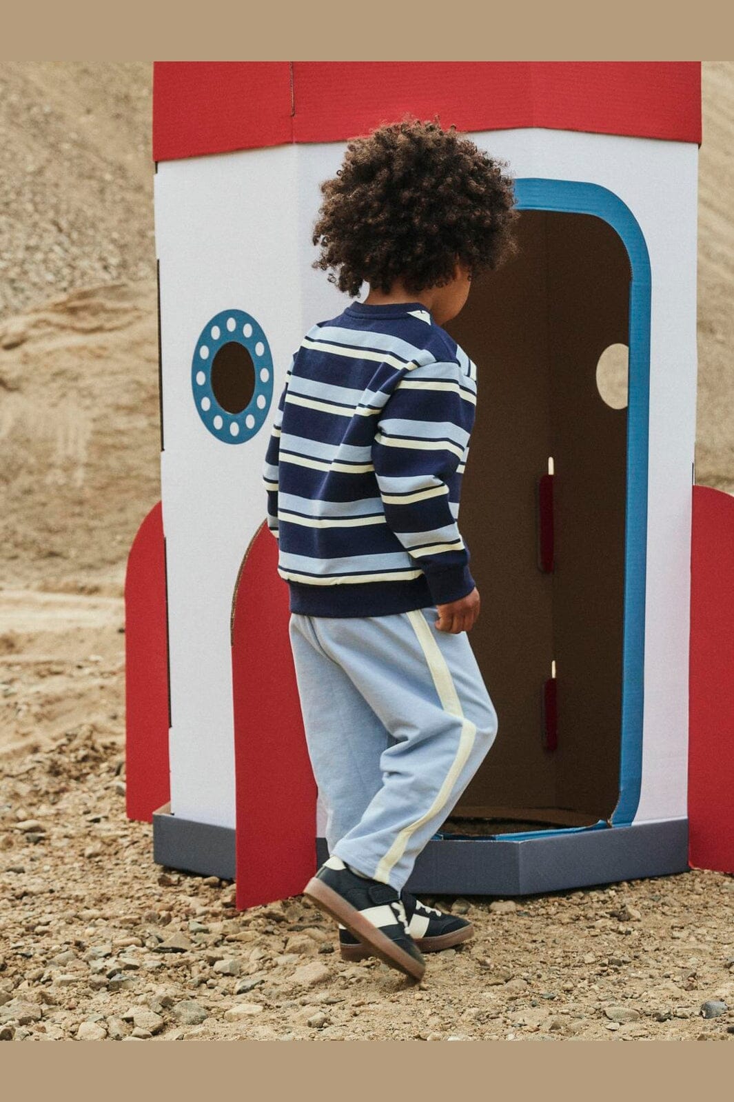 Raidallinen Name It -collegepaita tummansinisessä, vaaleansinisessä ja kermanvärissä. Vaakaraidat antavat collegepaidalle tyylikkään ilmeen.