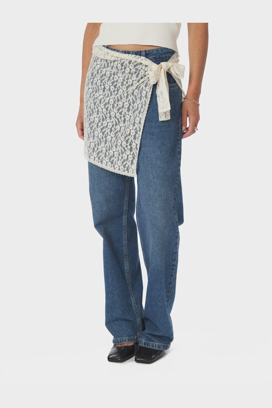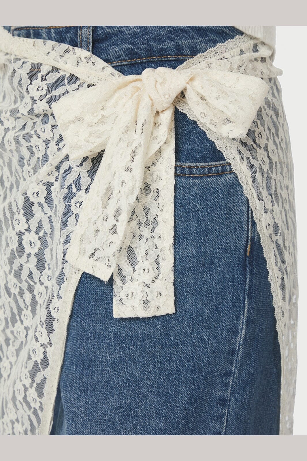 Neo Noir -kietaisuhame vaaleassa pitsissä. Hameessa on kukkakuosi ja se solmitaan sivulta.