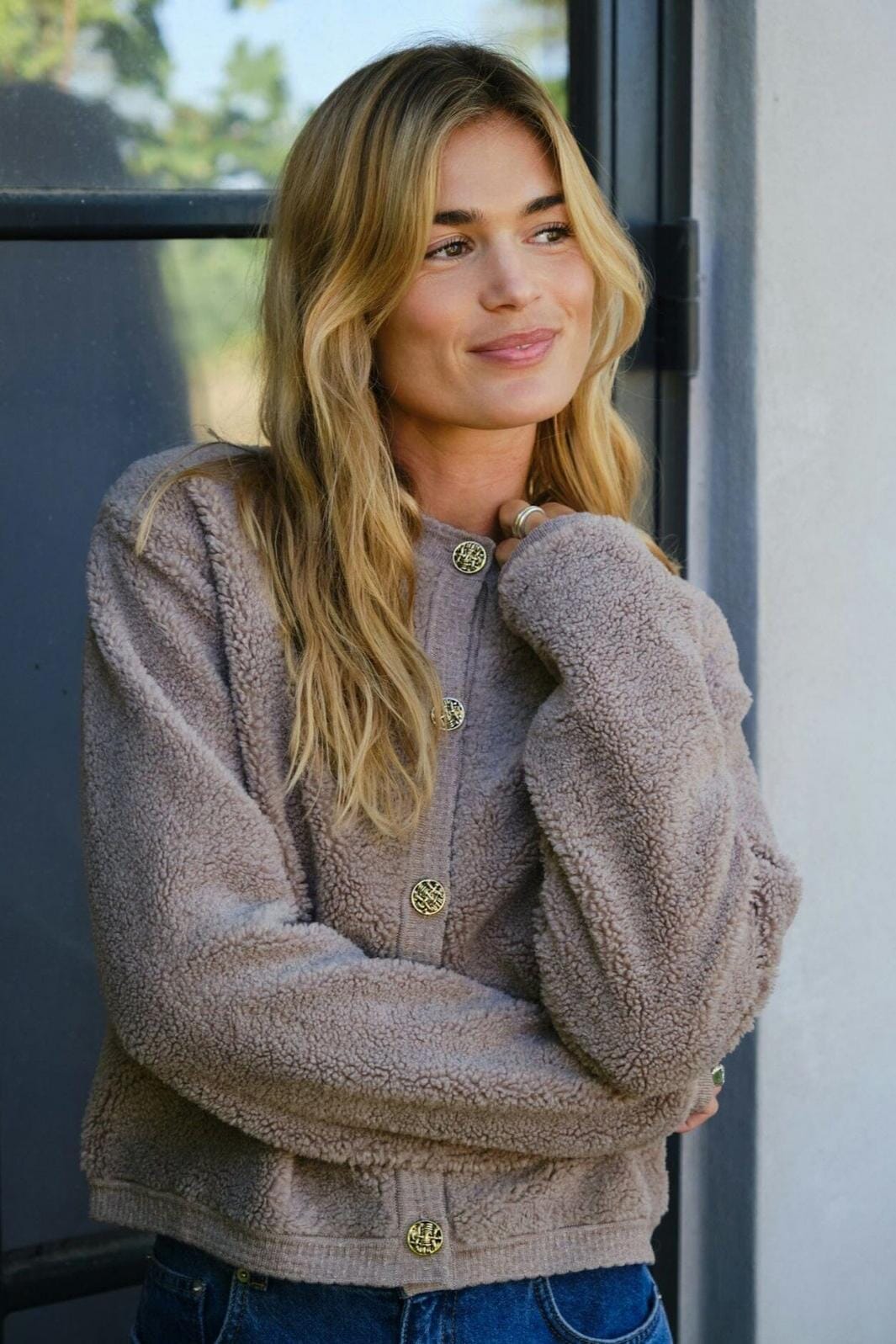 Neo Noir - Limo Fluffy Knit Cardigan 161963 - 125 - Dark Sand
