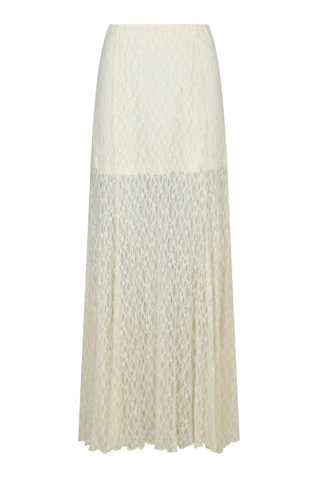 Neo Noirin pitsihame off-white värissä. Nilkkapitkä hame, jossa on kukkakuvio pitsissä ja lyhyempi alushame. Hameessa on normaali vyötärö ja kevyt, ilmava istuvuus.