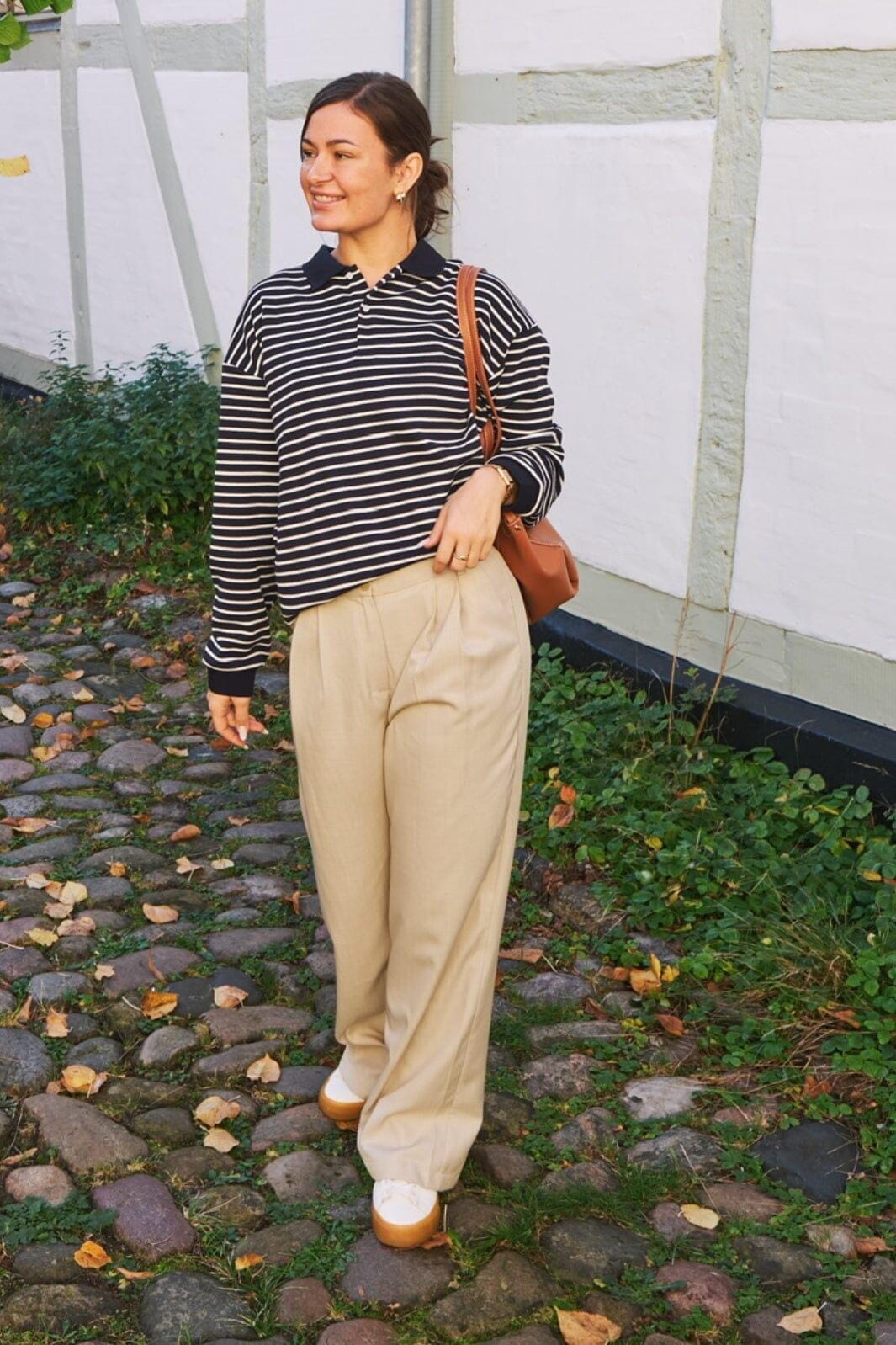 Neo Noirin hiekanväriset housut, joissa on leveät lahkeet ja laskokset vyötäröllä. Housuissa on löysä istuvuus ja korkea vyötärö, joka tarjoaa hyvää liikkuvuutta.