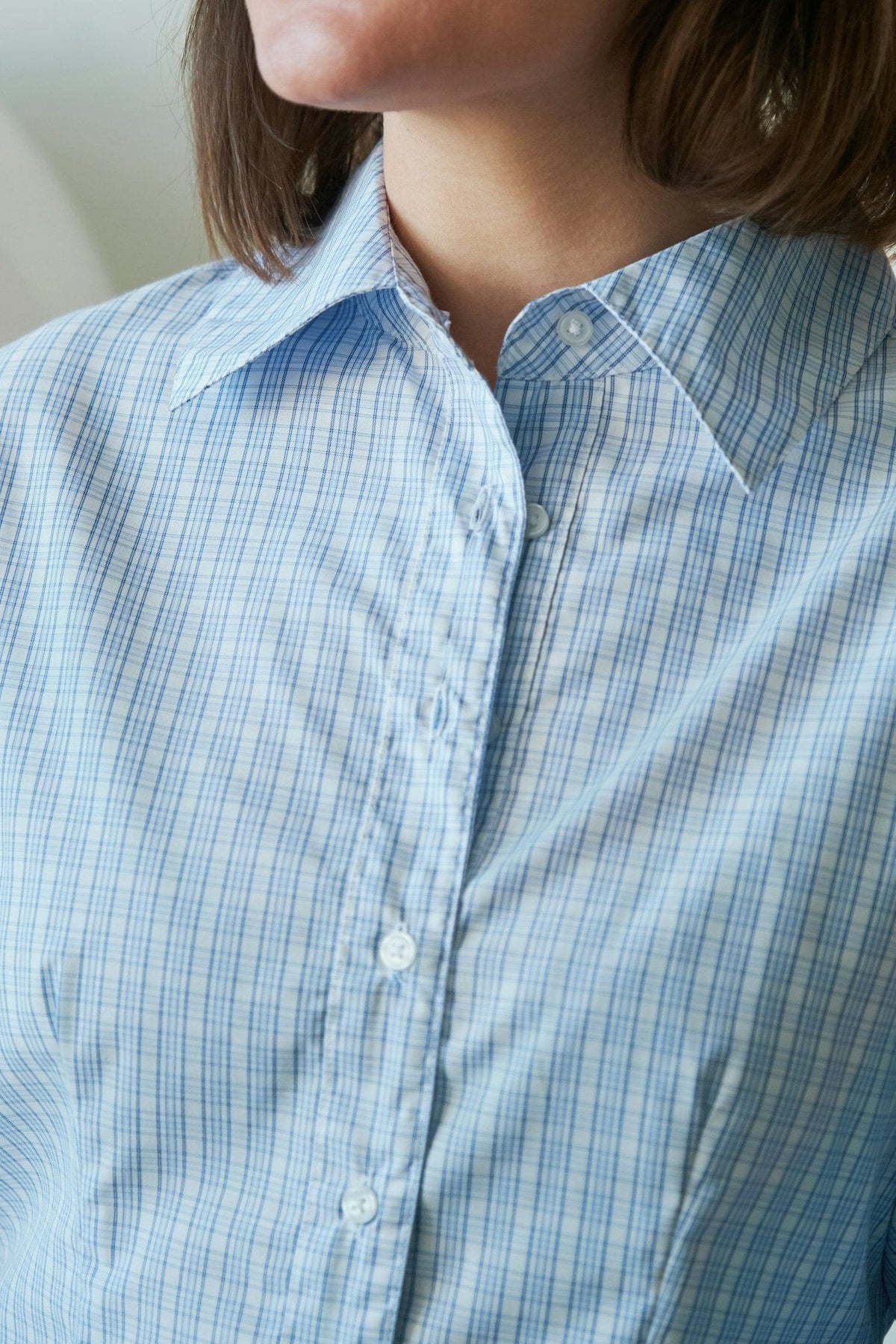 Vaaleansininen ruudullinen paita Neo Noirilta, jossa on slim fit -malli. Paidassa on klassinen kaulus ja leveät hihansuut pitkissä hihoissa. Edessä olevat napit tekevät siitä helpon pukea ja riisua.