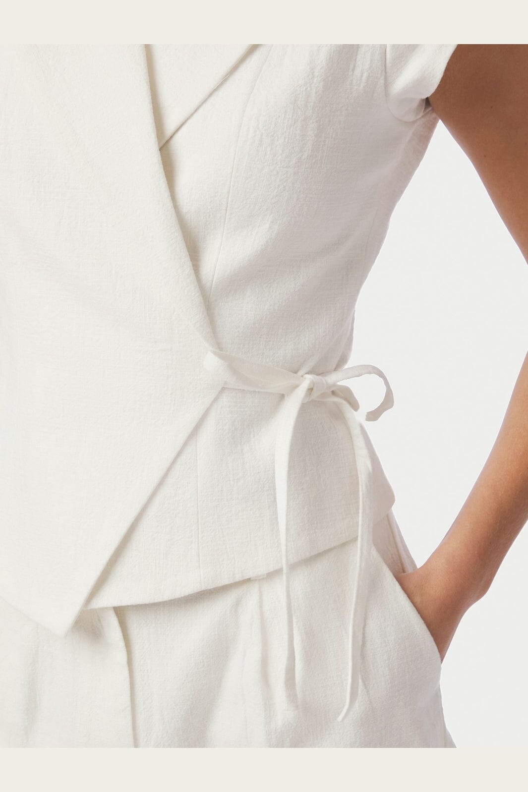 Liivi Neo Noirilta kermanvärisessä sävyssä. Liivi on valmistettu 80 % ramie-kuidusta ja 20 % puuvillasta, siinä on lyhyet hihat ja paitakaulus.