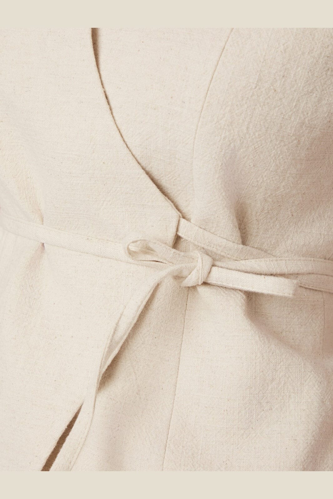 Liivi Neo Noirilta, valmistettu 80 % ramiesta ja 20 % puuvillasta luonnollisessa sävyssä. Liivissä on vartaloa myötäilevä istuvuus ja kietaisuvaikutelma.