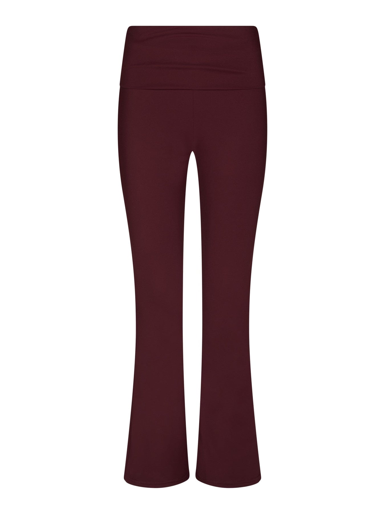 Neo Noir -leggingsit syvänpunaisessa sävyssä. Housut on valmistettu 75 % nylonista ja 25 % elastaanista, ja niissä on korkea vyötärö sekä kevyt levennys nilkoissa.