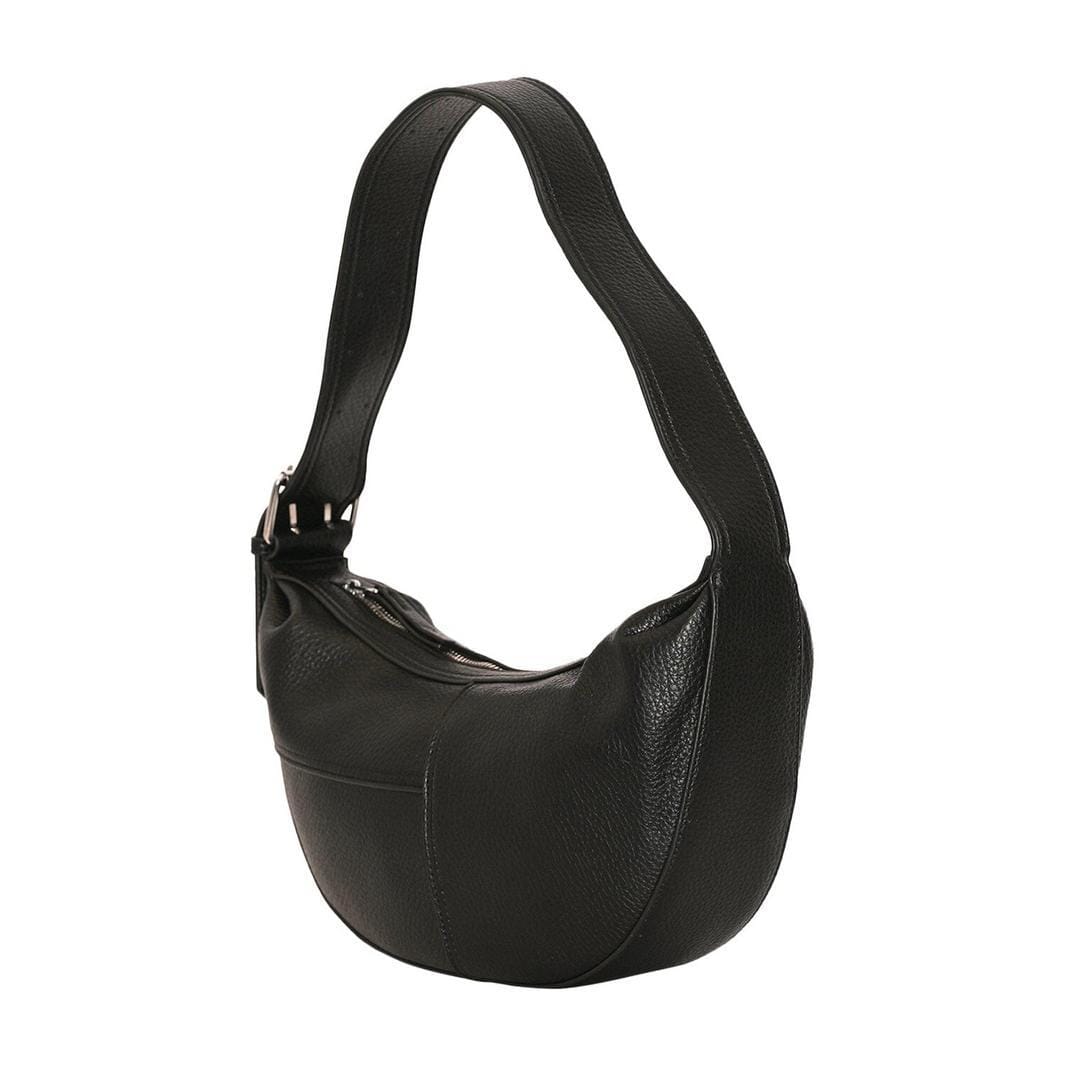 Musta olkalaukku Noellalta, jossa on kaareva muoto ja rosoinen pinta. Laukussa on tilava sisäosasto ja käytännöllinen vetoketjukiinnitys ylhäällä.