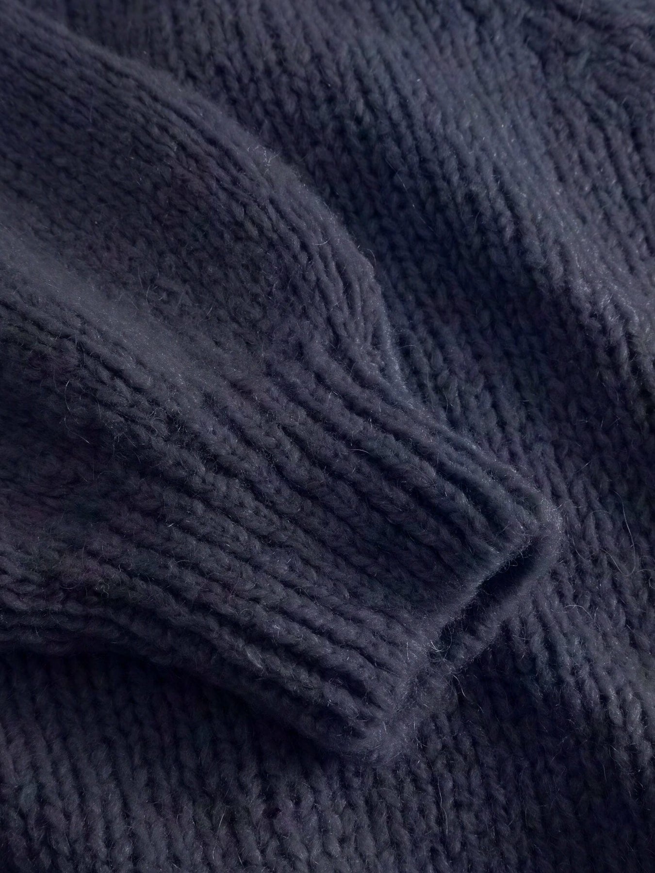 Tummansininen neuletakki Noellalta, jossa on neulottu rakenne ja pitkät hihat. Rentoa istuvuutta on helppo yhdistää eri kerroksiin vaatteita alla.