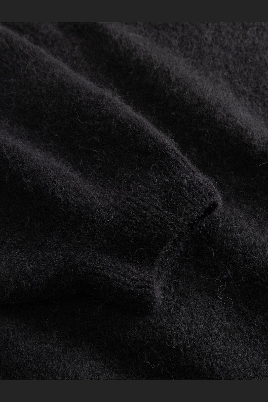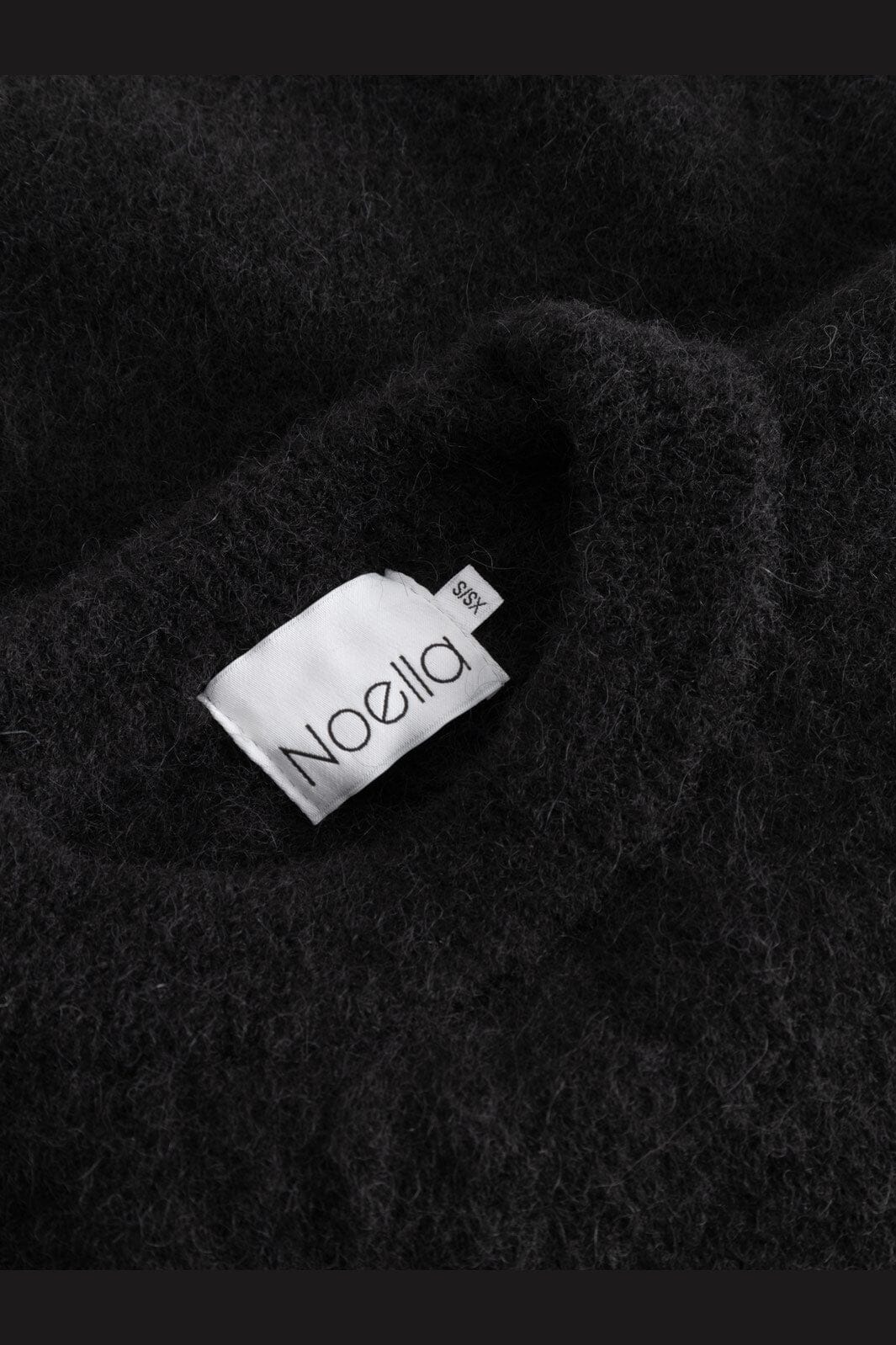 Musta neulepaita Noellalta, jossa on pehmeä ja pörröinen pinta. Suunniteltu puffihihalla ja lyhyellä pituudella modernia tyyliä varten.