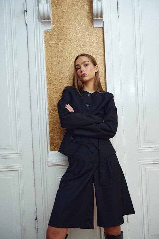Musta shorts Noellalta polven pituudella. Shortseissa on laskokset ja korkea vyötärö nauhakiinnityksellä.