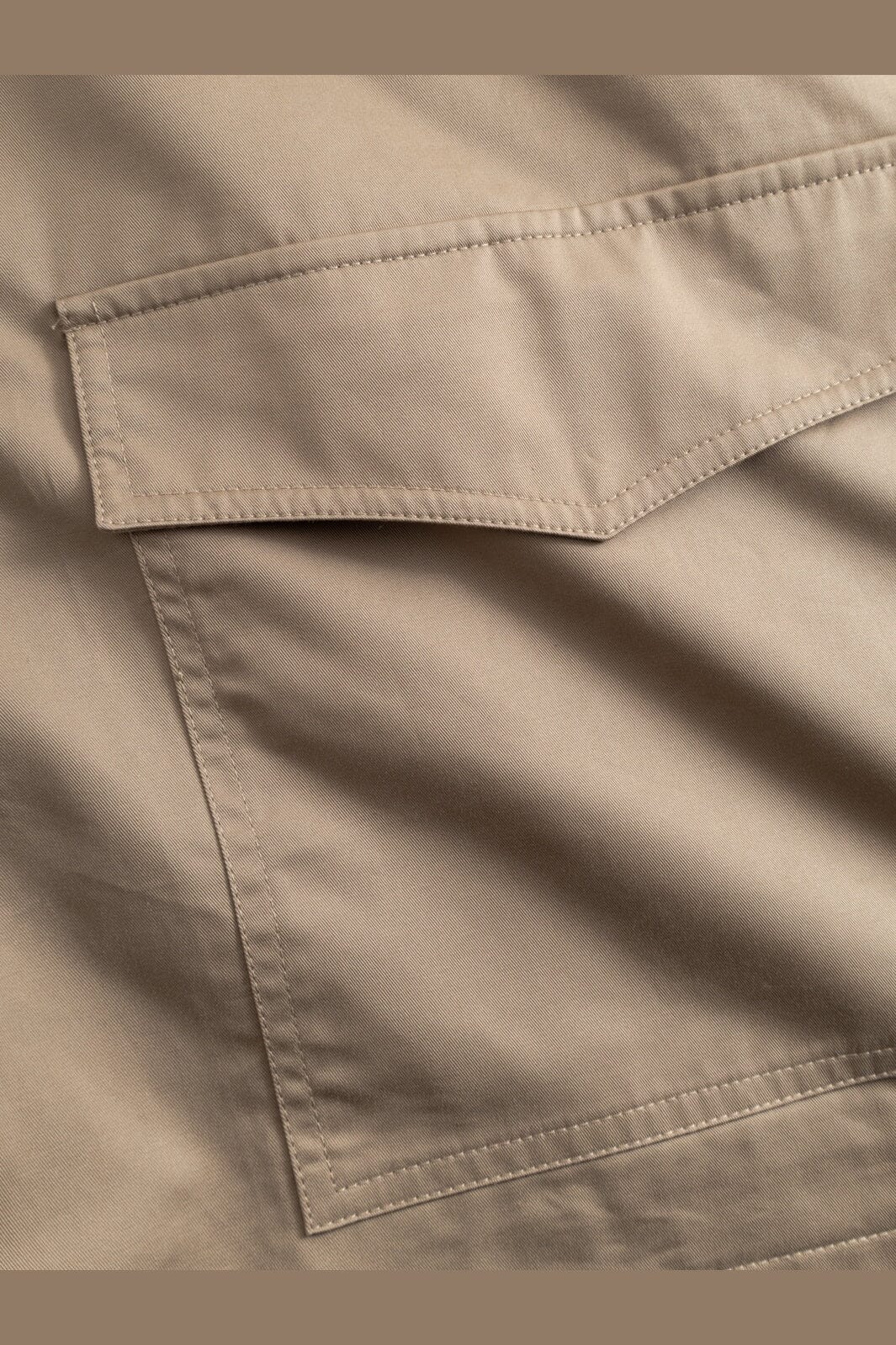 Noellan takki harmaan hiekan sävyssä. Takki on valmistettu 100 % puuvillasta ja siinä on väljä istuvuus ja pudotetut olkapäät.