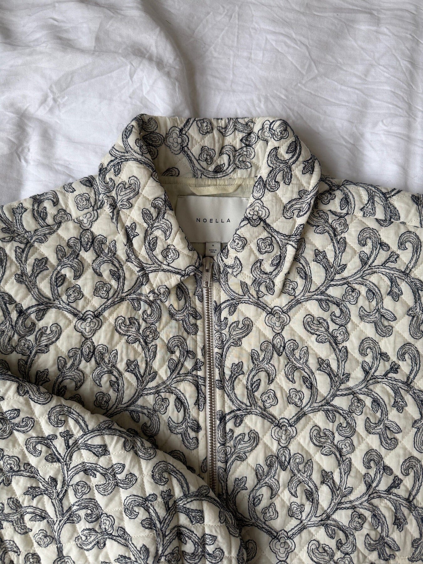 Tikattu takki Noellalta, valmistettu 100 % puuvillasta offwhite-sävyssä, jossa on kuviollinen design offwhiten ja tummanharmaan sävyissä.