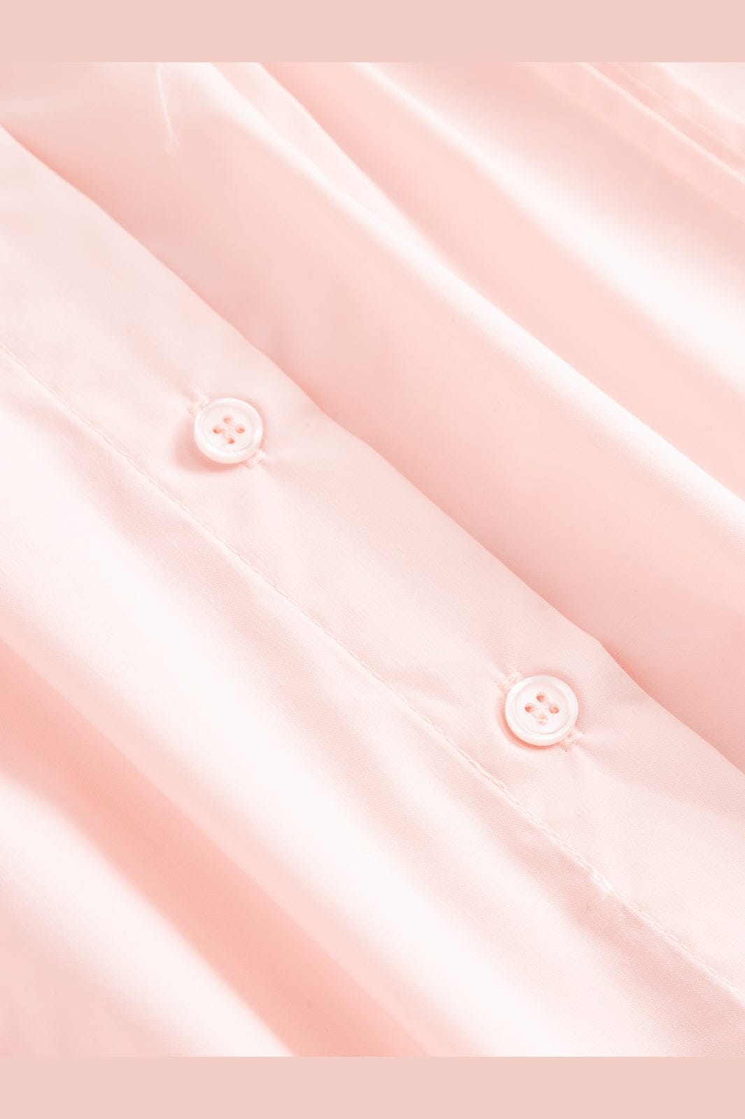 Vaaleanpunainen Noella-pusero, jossa on korkea kaulus ja nappikiinnitys. Puserossa on laskostetut yksityiskohdat rinnan kohdalla sekä pitkät hihat, joissa on pienet kalvosimet.