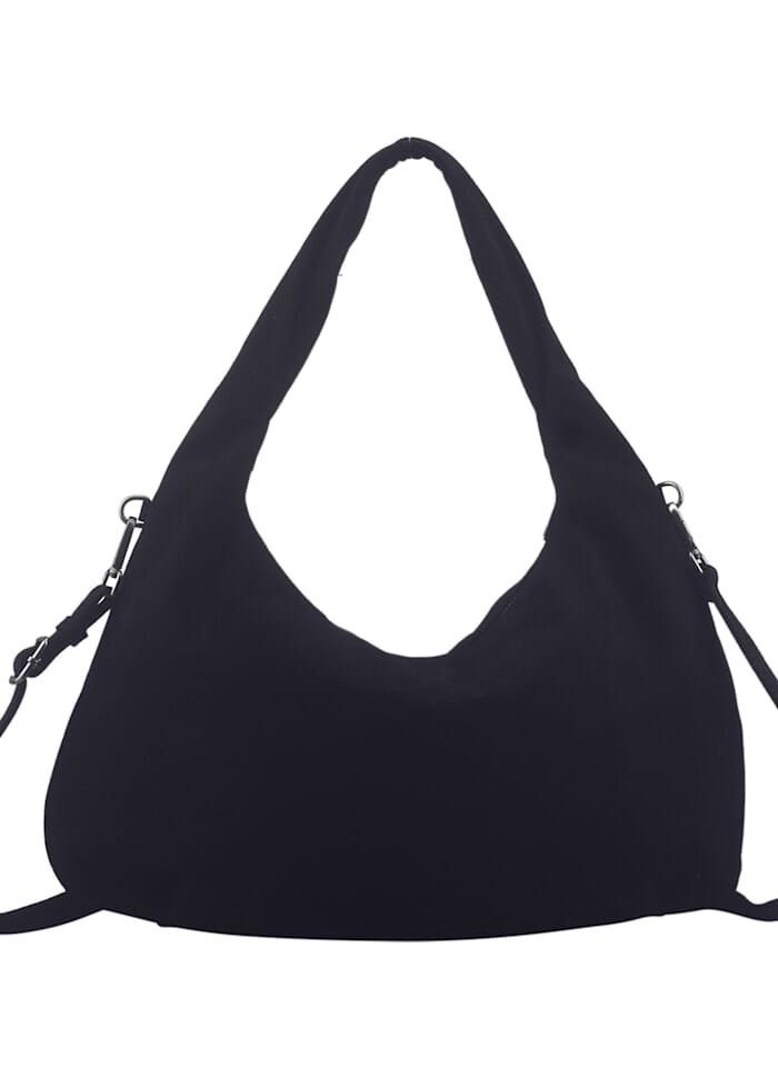 Musta hobo-laukku Noellalta, jossa on kaareva muoto ja leveä pohja. Laukussa on käytännöllinen olkahihna ja tilava sisustus arjen tarpeita varten.